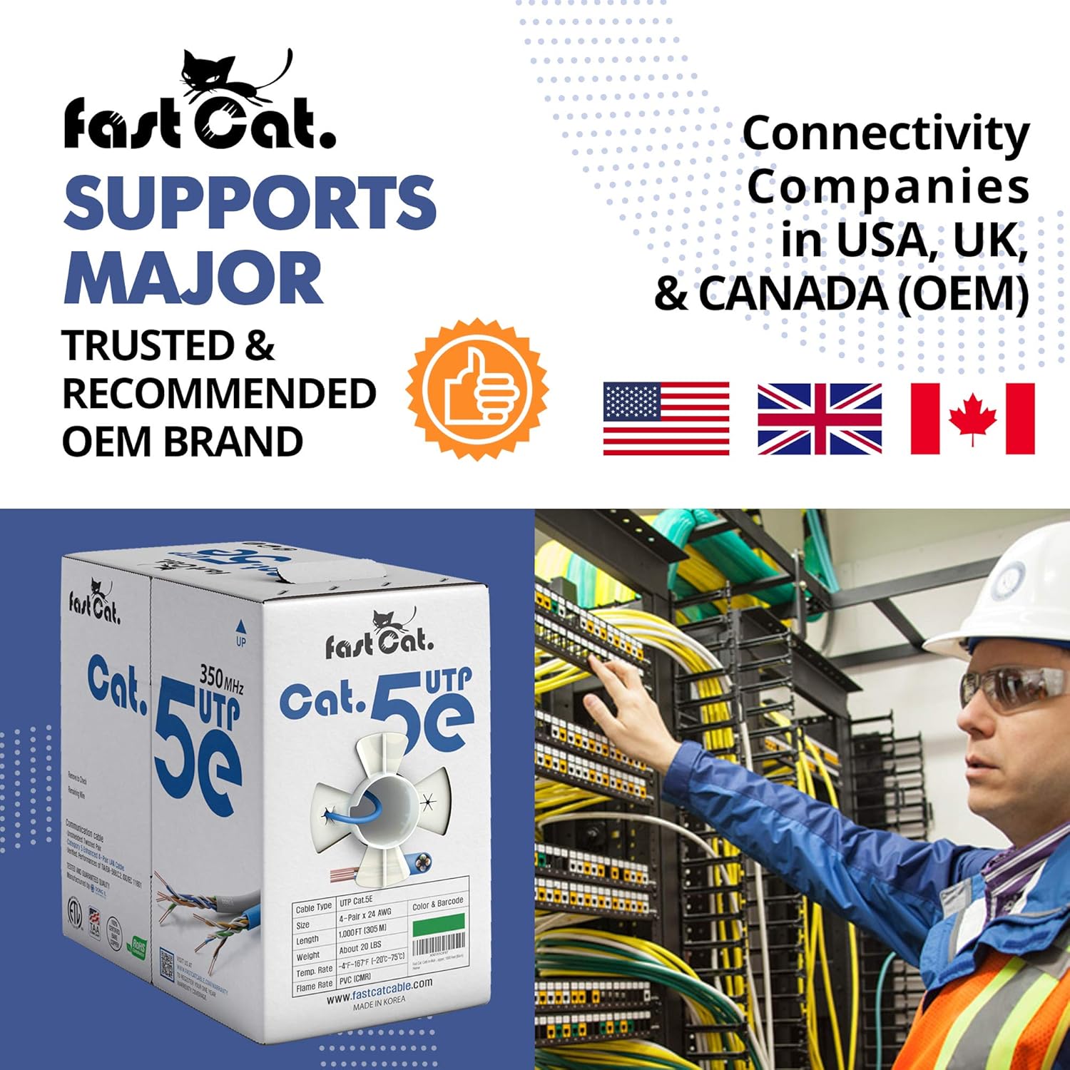 fast Cat. Cat5e Ethernet Cable 1000ft - 24 AWG, CMR, Insulated Bare Copper Wire Cat 5 ethernet Cable with FastReel - 350MHZ / Gigabit Speed UTP Cable Cat5e - CMR (Green)