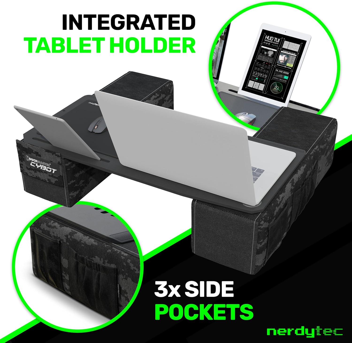 - SMART FEATURES: With side pockets for power supplies and remotes, a repositionable mouse pocket for both hands, and a tablet holder, the CYBOT keeps your setup tidy.
