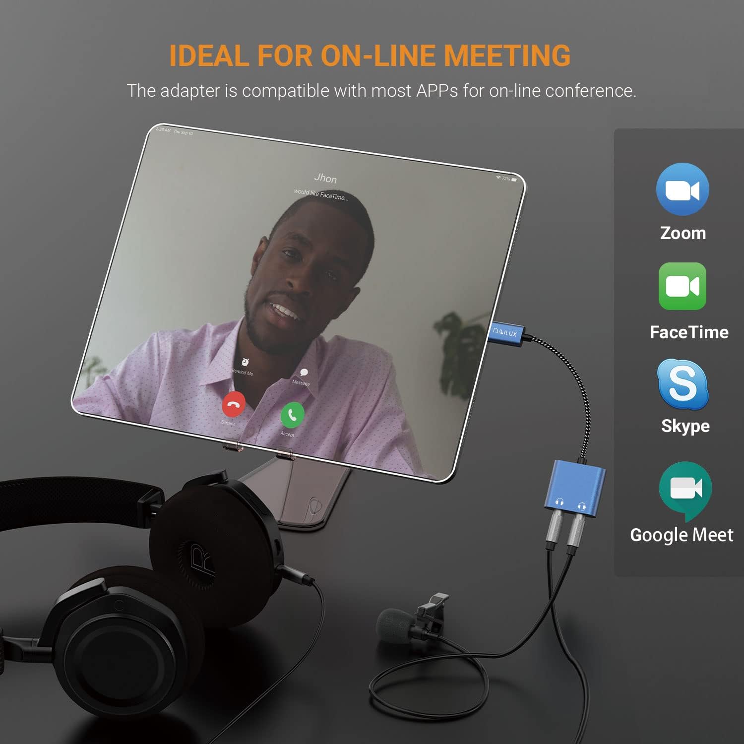 - [Compatible with TRRS MIC] – The adapter is also ideal for working from home with its various compatibility for most on-line conference APPs such as “Zoom”, “Skype”, “Google Meet” and “FaceTime”. Simply plug in a 3.5mm TRRS microphone and headphones and you can have better audio quality for your meeting. You can use the adapter for your live stream too.