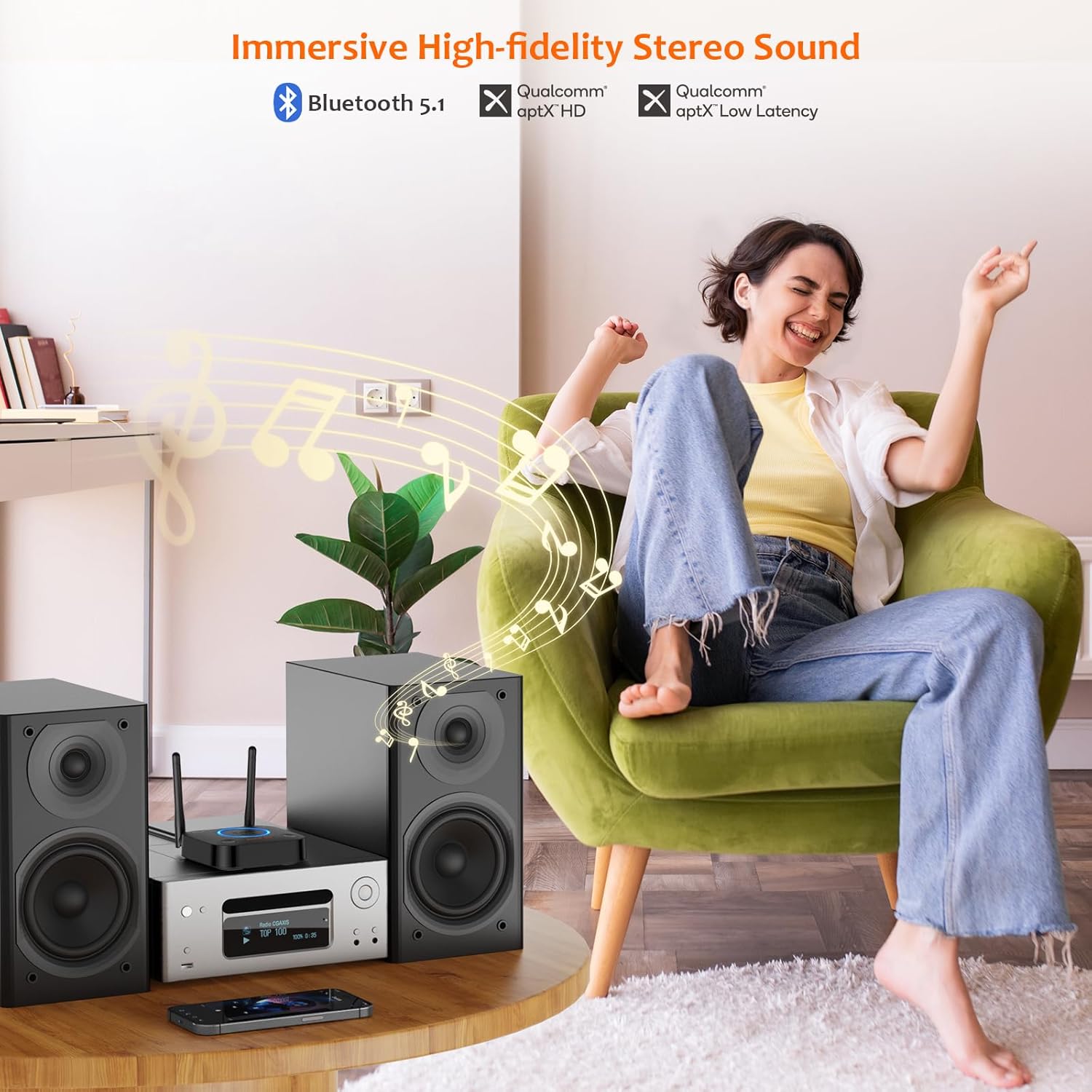 - 【OPT&AUX&COAXIAL, EASY SETUP】Easy plug, pair and play. Plug into computer speakers, home stereo systems or other speaker systems via the 3.5 mm, RCA, coaxial or optical cable, then pair the Bluetooth receiver with the Bluetooth audio devices such as smartphones or tablet. After that, you can enjoy the music. NOTE: This product is a receiver only, NOT a transmitter.
