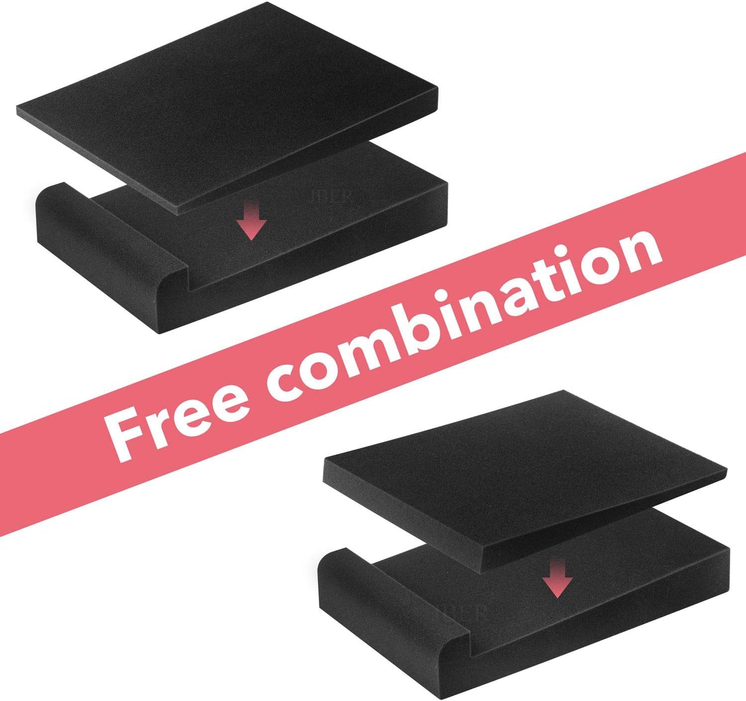 - Choose from 5 different angles (0°, 5°, 10°, -5°, -10°) as well as 2 adjustable heights, allowing you to move the monitor isolation pads into a versatile array of angles for the best sound quality.