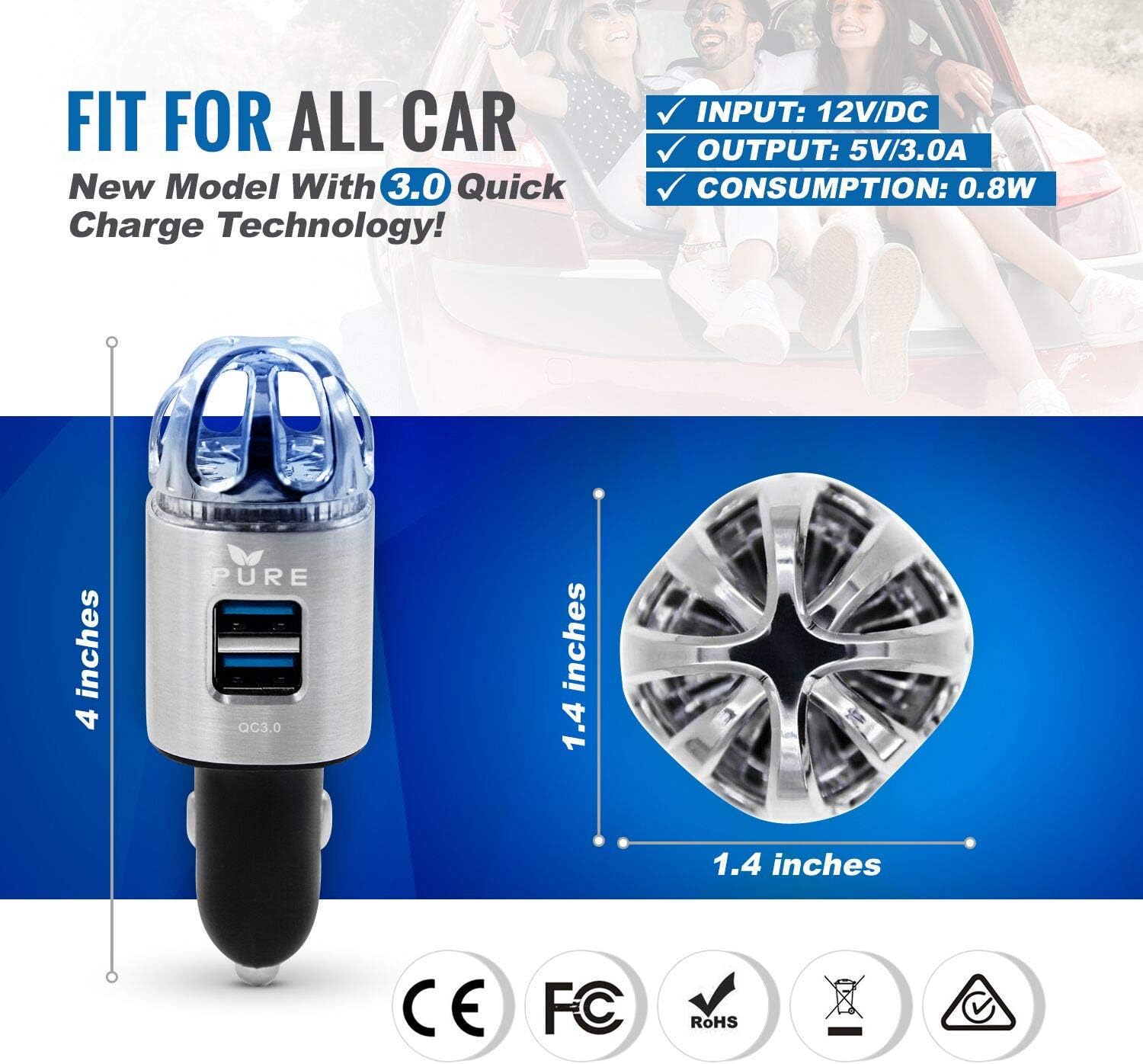- ✅[Quick Charge USB 3.0 Capability] The only model in the market with a USB 3.0 port to quick charge smart devices lightning fast. Up to 4 times faster than conventional charging methods. Definitely a must-have car accessory for all vehicle owners. Not only does the unit purify the air, it also doubles as a car charger with dual USB ports!