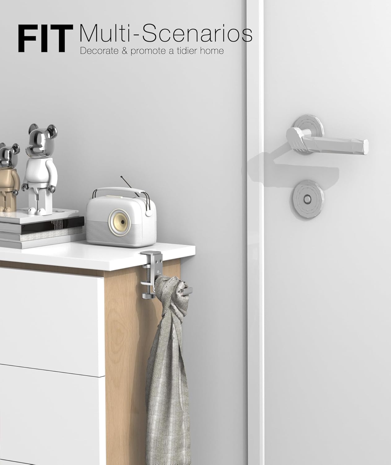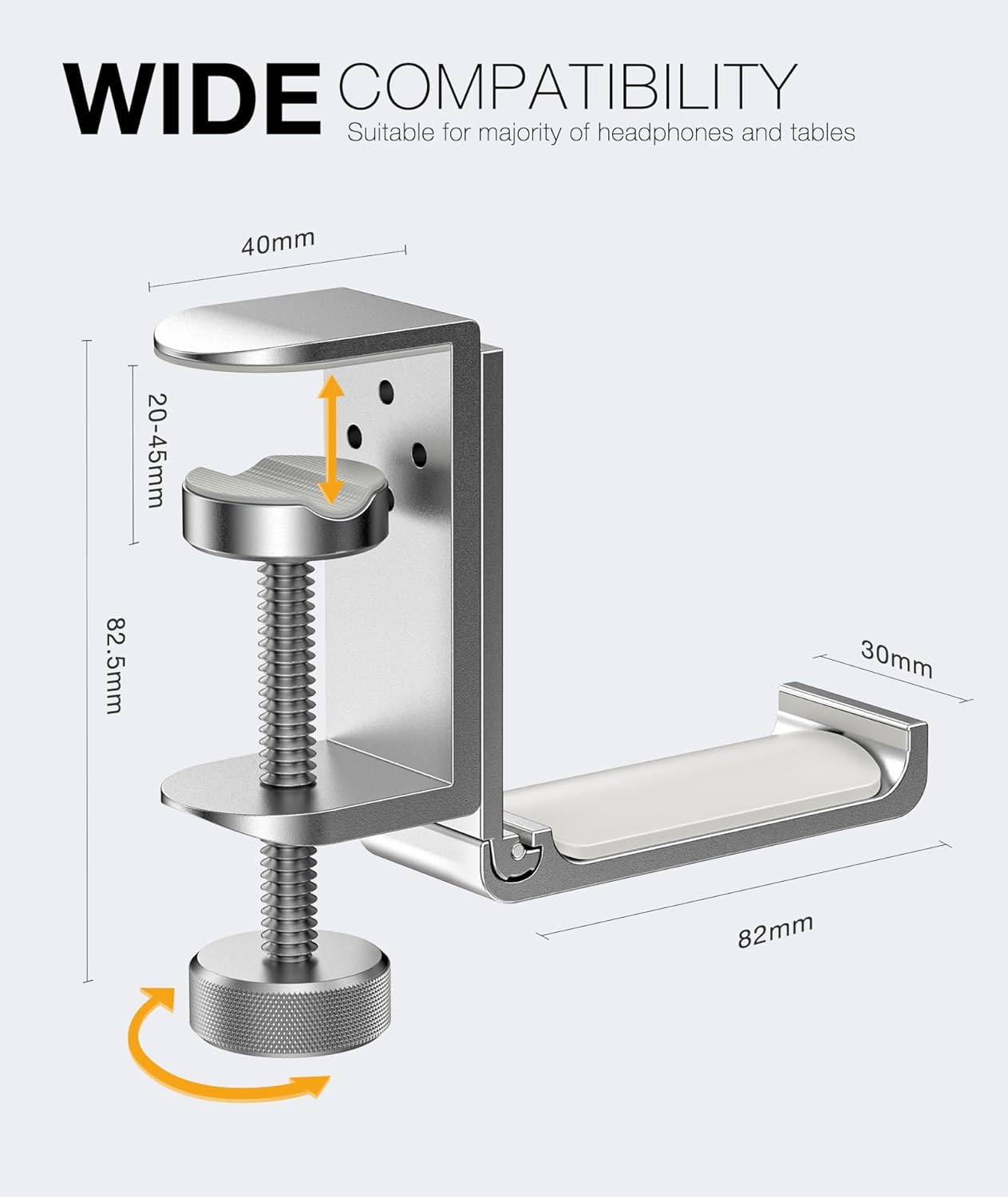 - Under Desk Headphone Hook – Universal Fit for Most Desks: This under desk headphone stand clamps securely to desktops from 5mm up to 50mm thick. Compatible with most gaming desks, office tables, and shelves, it’s a universal mount for convenient, space-saving storage.