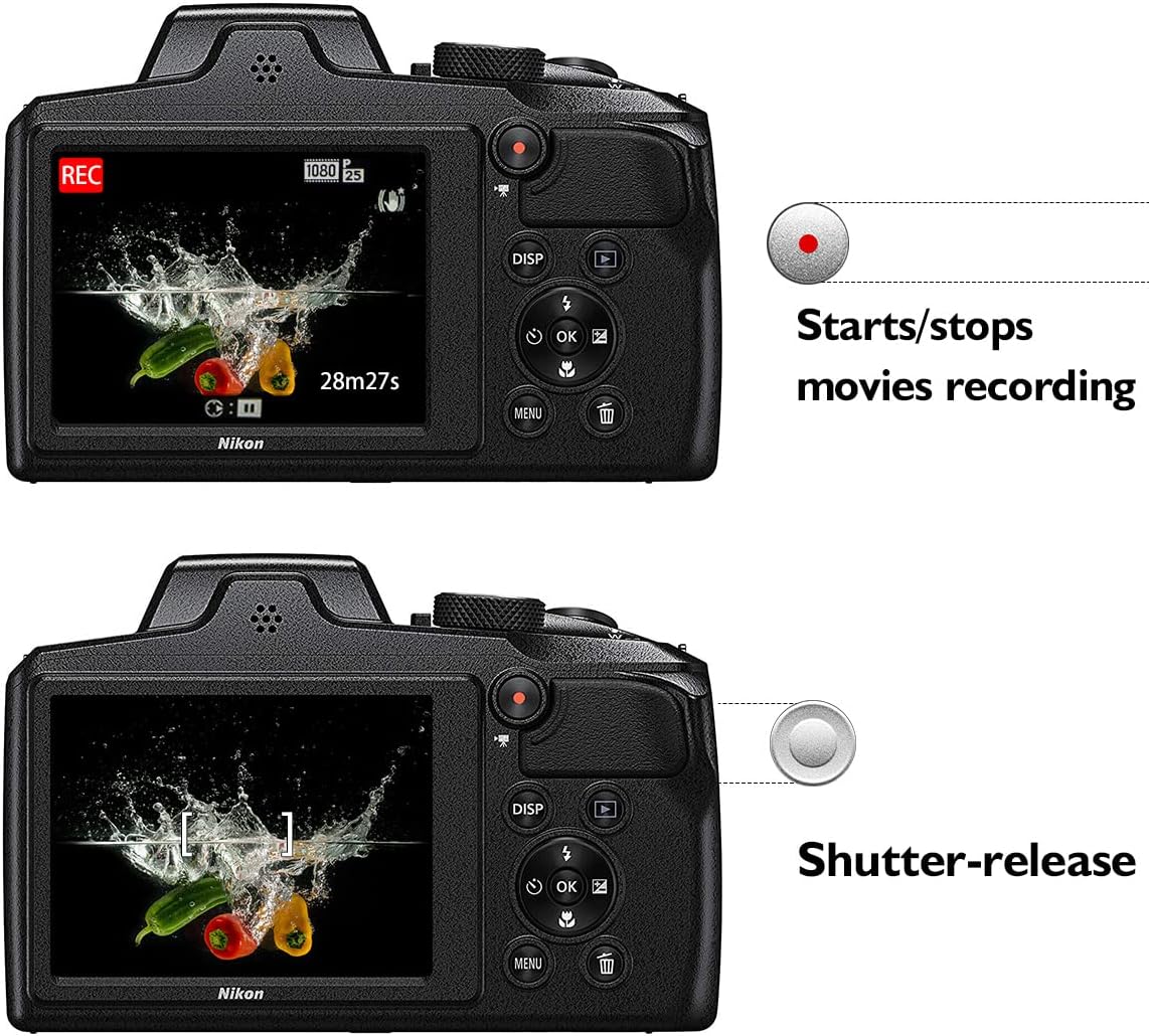 - A shutter release button and a movie record button on remote can be used for shooting photos and starts/stops movie videos