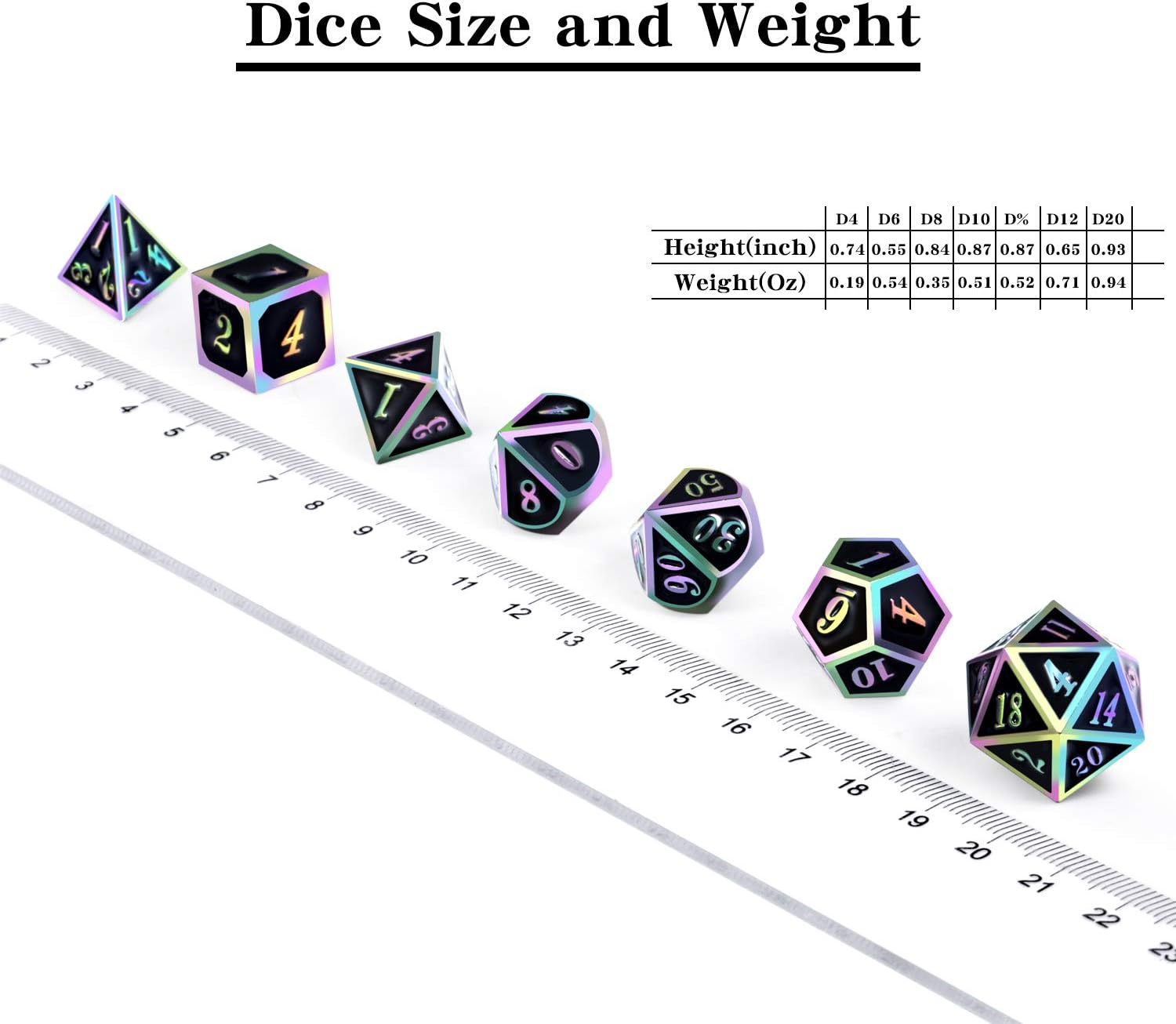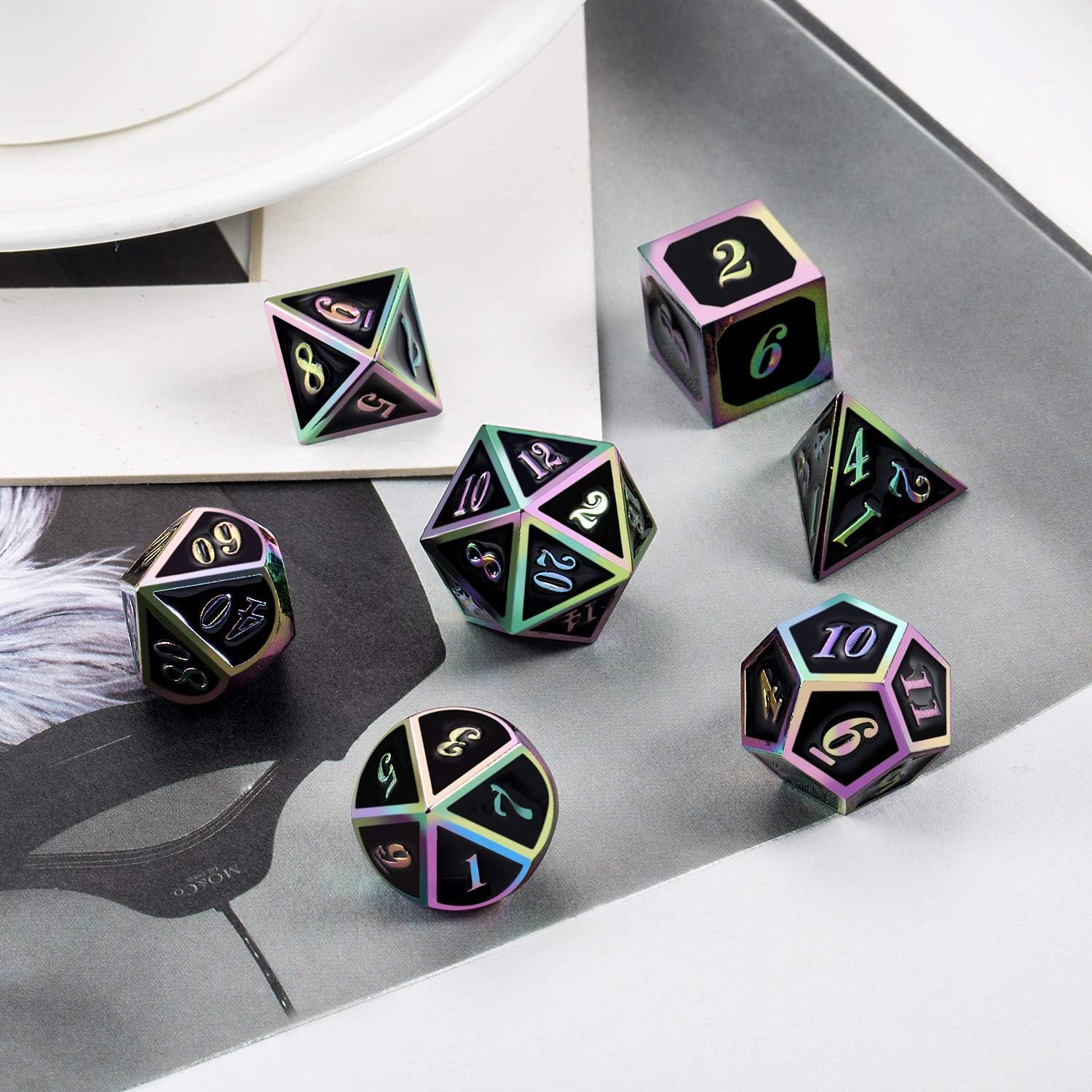 DNDND Rainbow Edge 7 Pieces Metal Dice Set DND Polyhedarl Heavy D&D Dice Set with Metal Tin for Dungeons and Dragons and Role Playing Game