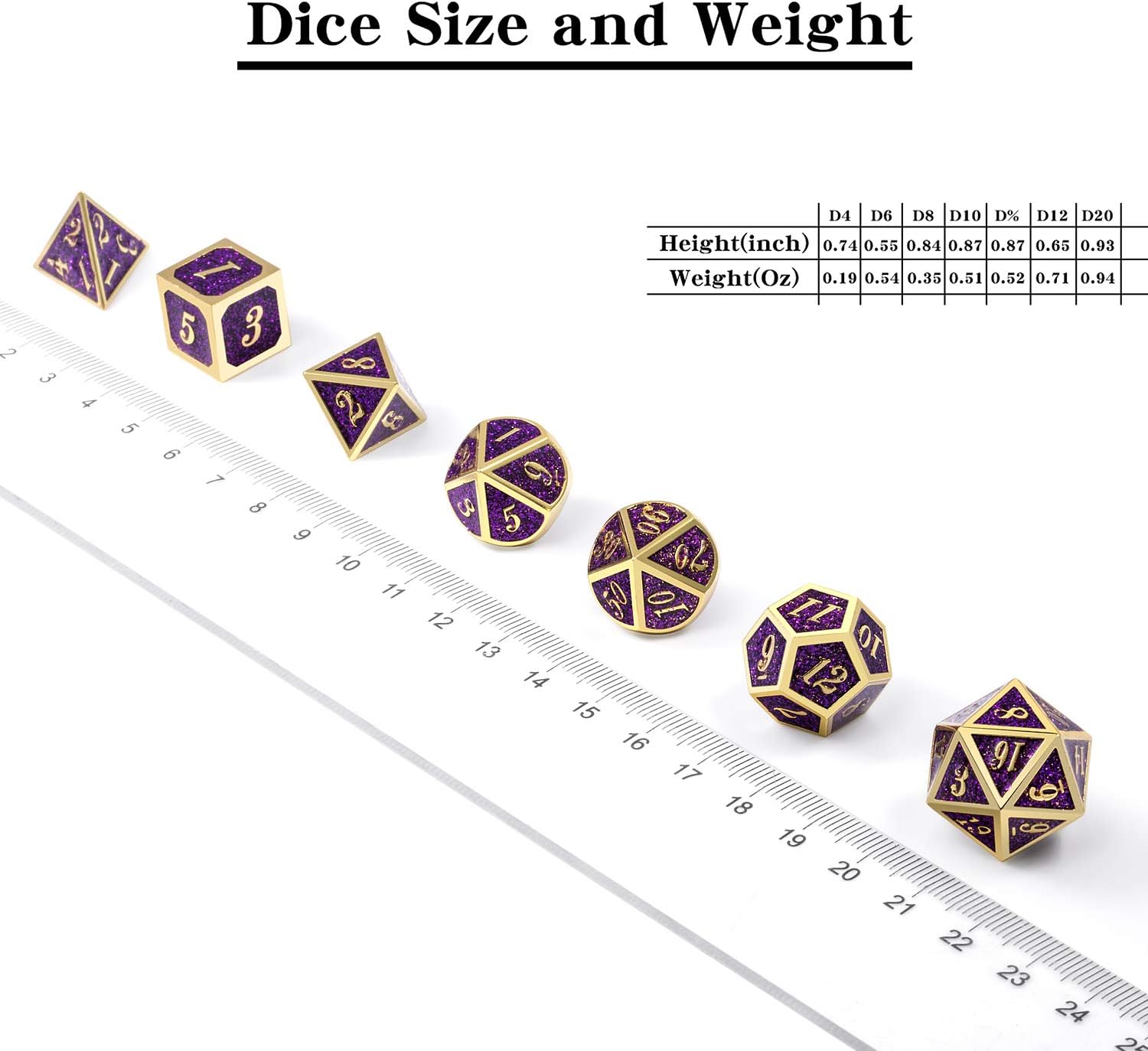DNDND Glitter Purple Metal Dice Set, Solid Polyhedral DND Metallic Dice with Free Metal Case for Role Polying Game Dungeons and Dragons