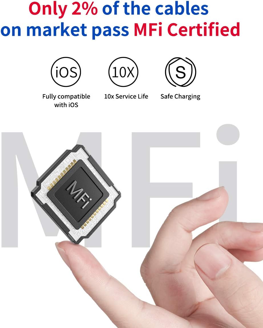 - 【Upgarded C89 MFi Certified Lightning Cable】: Certified by MFi and built with Apple's upgarded C89 terminal(More robust) and smart chip promise no warning message pops up. At the same time, this iPhone charger cable supports fast charging (up to 2.4A) while preventing overheating and overcharging, ensure that you and your devices are safe