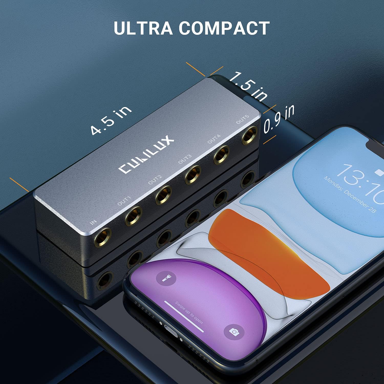 Cubilux 5-Way Quarter Inch Signal Splitter, Passive 1/4” Audio Splitter, 6.35mm Multiport Aux Splitter Box for Instruments, Bass Guitar, Keyboard, Headphones, Studio Monitor, Speaker, Amplifier