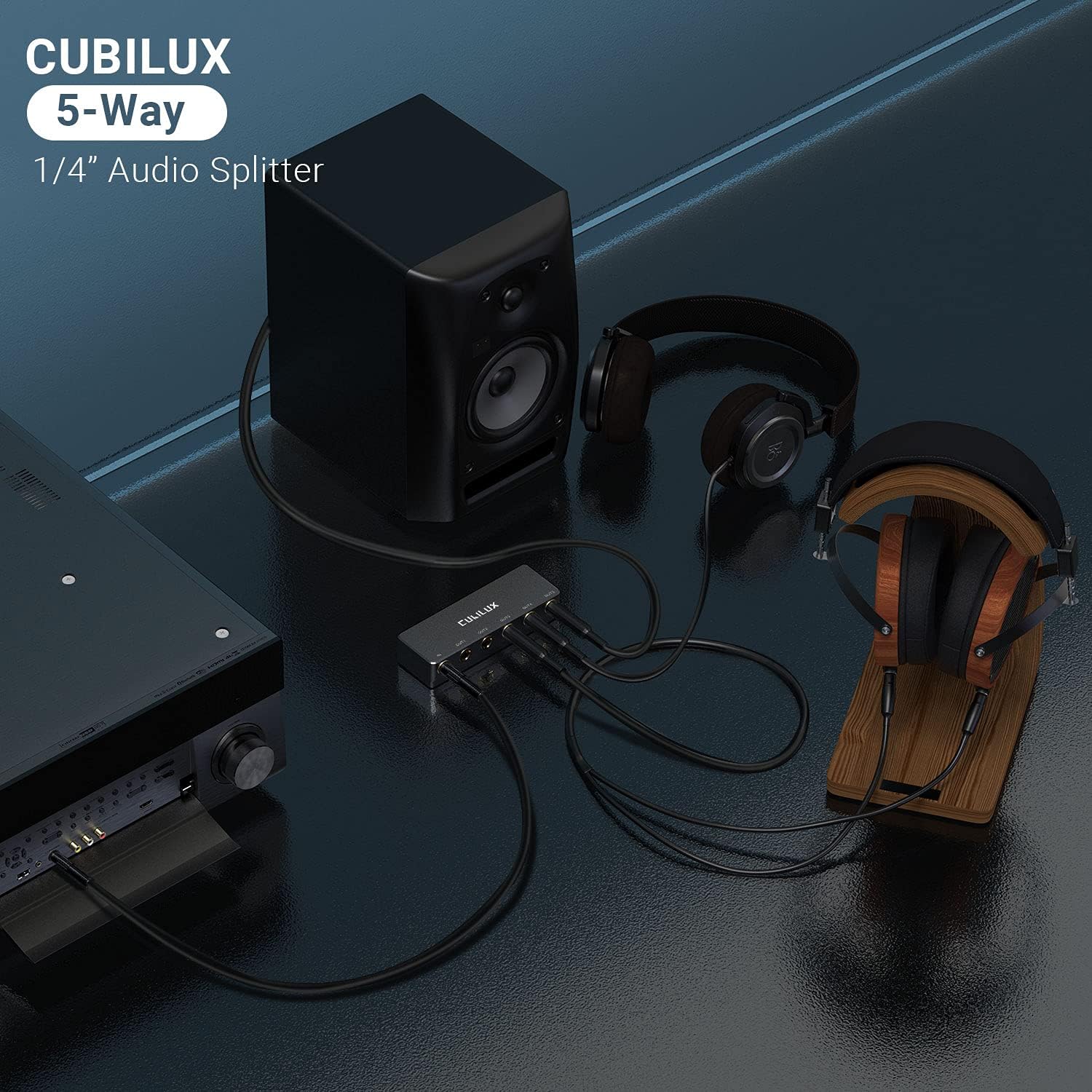 Cubilux Passive 6.35mm Headphones Splitter Box, 1/4” Stereo Multi Audio Distributor, Multiport Quarter Inch TRS TS Aux Splitter for Guitar Signal, Studio Recording, Live Performance, Monitors