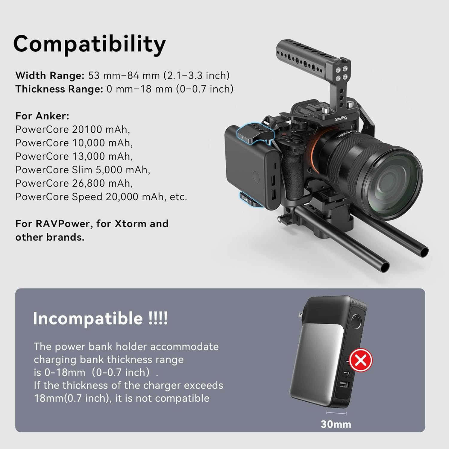 - 【FOR POWER BANK】 SMALLRIG Holder BUB2336 is designed for portable power banks, it could attaches a power bank to the camera rig when a sustainable charging solution is required.