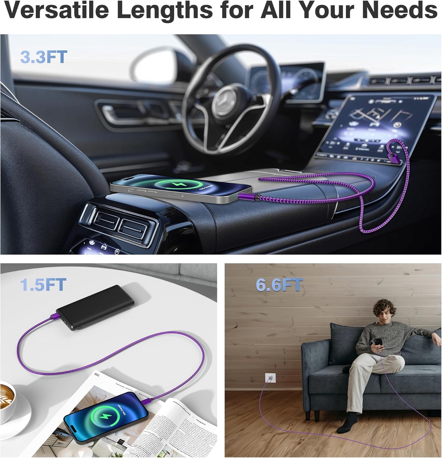 Elebase for iPhone 16 Pro Max Car Charger Cable 1.5/3.3/6.6FT 3 Pack,Type C Charging Cord for Car iPhone 16 Plus 15,Kindle Fire HD 2022 12th,10 9th,8 10th Generation,Samsung Galaxy S24,S23,A54 Flip 6