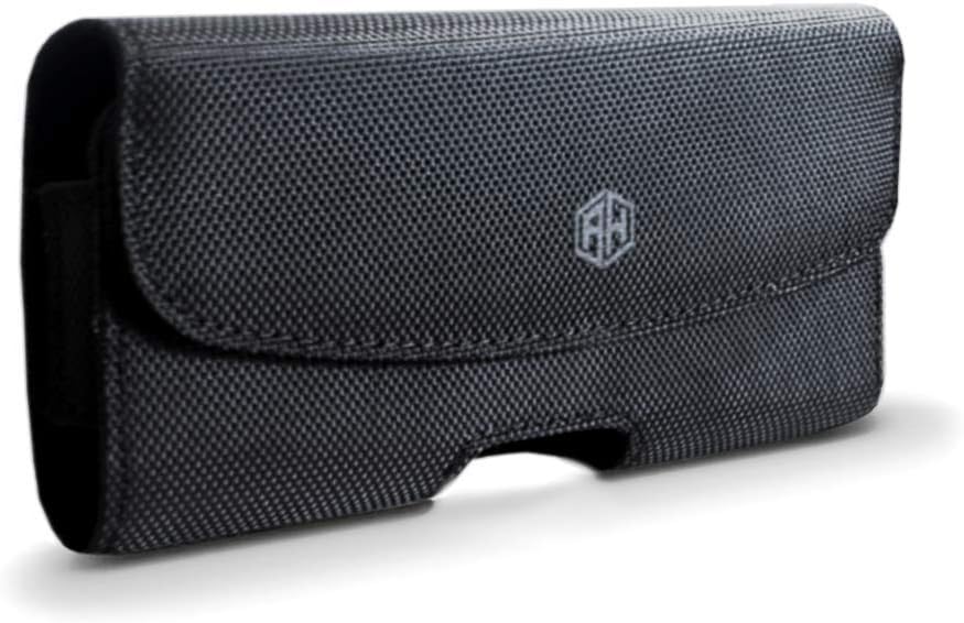 AH Military Grade Horizontal Cell Phone Pouch Clip Cell Phone Holder for Belt Loop for iPhone 13 Max 12 Pro Max 14 Max 14 Max Plus, S20 Plus Nylon Phone Carrier Holster Fits Cell Phone (Large)