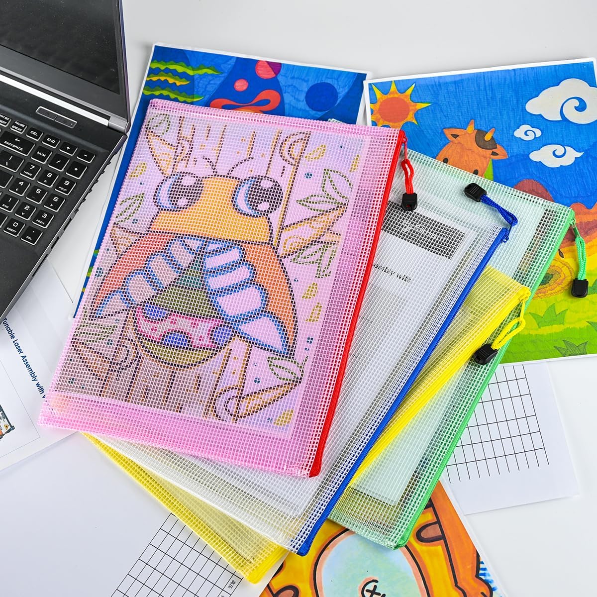 AUSTARK 10 Pcs Zipper File Bags, Waterproof Plastic Mesh Pouch for Office School, Board Game Storage Bags (A4 Size 13.4''x9.4'', Multicolored)