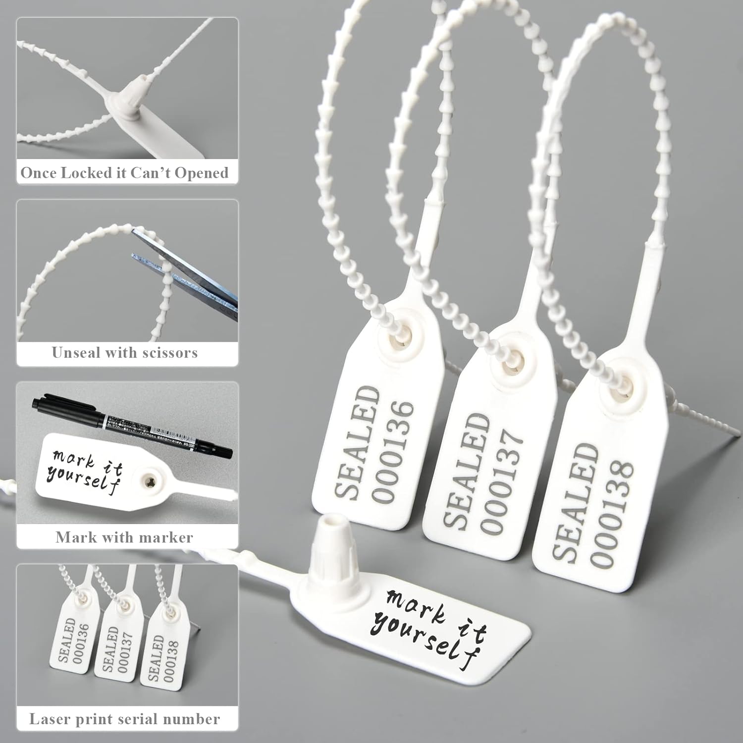 1000 Numbered Plastic Tamper Seals, Zip Ties for Fire Extinguishers Pull Tite Security Tags Disposable Self-Locking Signage - Label Tie 250mm Length (1000 PCS, White)