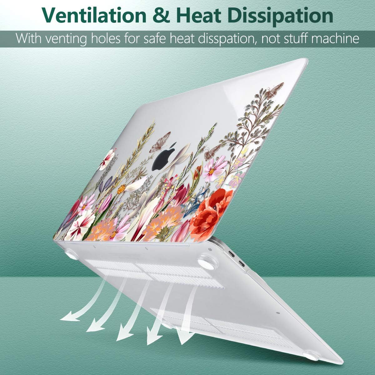 Batianda Case for MacBook Air 13 Inch M1 2020 2019 2018 Release Model A2337 A2179 A1932 with Retina & Touch ID, Clear Hard Shell Cover with Keyboard Cover & Screen Protector,Flower and Butterfly