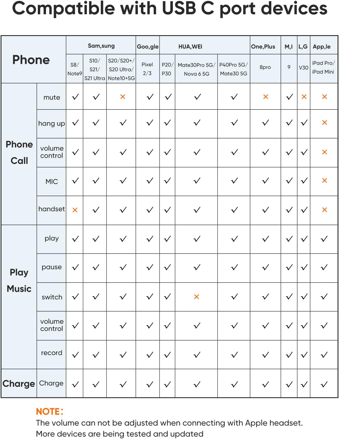 - Supports PD Charging: 2 in 1 USB C splitter only compatible with which your device can support PD charging. It supports PD charging up to 60W (20V/3A). we suggest that you use the PD charger to get faster charging speed connecting Type-C device without the PD function, the audio and charging function is an alternative, and the charging function takes priority. ***Doesn’t support QC***
