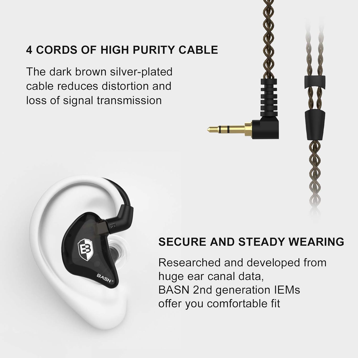 BASN in Ear Monitor Headphones for Musicians, Bsinger 2nd Generation Sound Isolating Earphones with Dual Dynamic Drivers Detachable MMCX Cable (Black)…