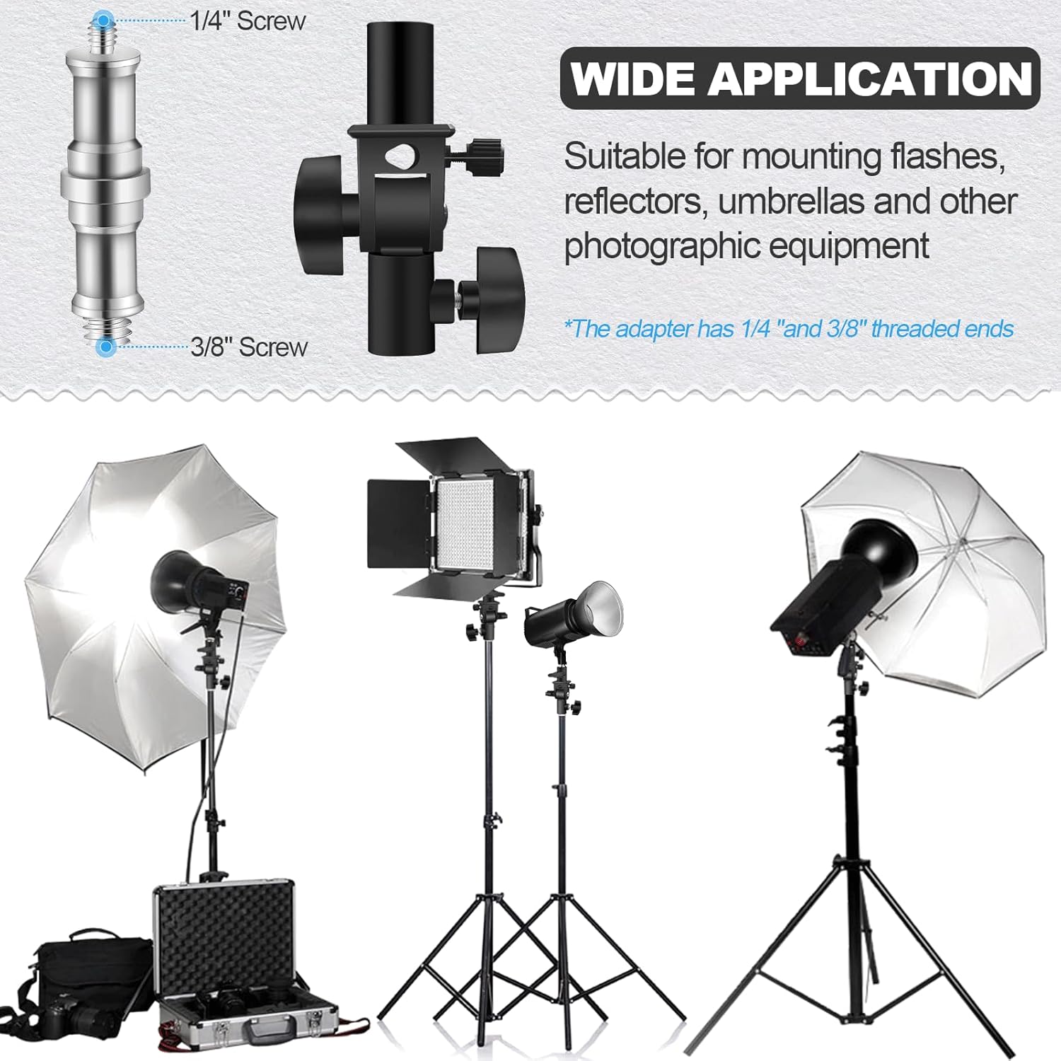 WELLMAKING U-Shape Camera Flash 180°Swivel Mount Bracket with Standard 1/4 to 3/8 inch Metal Male Screw Spigot Stud Compatible for Umbrella Softbox Reflector Holder Stand for Video Light Studio Light