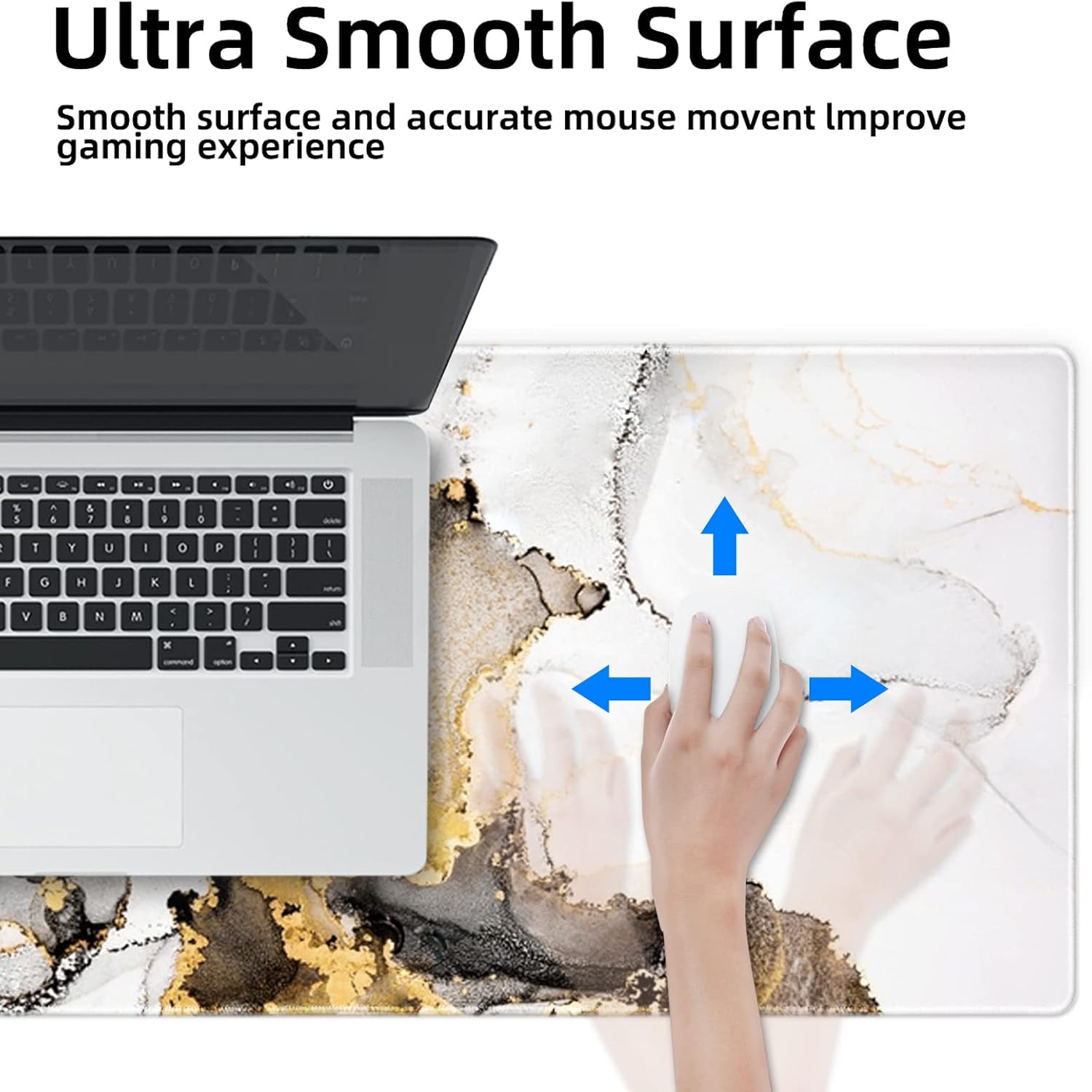 Galdas Large Mouse Pad XXL XL Large Mouse Pad Long Extended Mousepad Desk Pad Non-Slip Rubber Mice Pads Stitched Edges Thin Pad (31.5x11.8x0.12 Inch)-Ink White Gold Marble