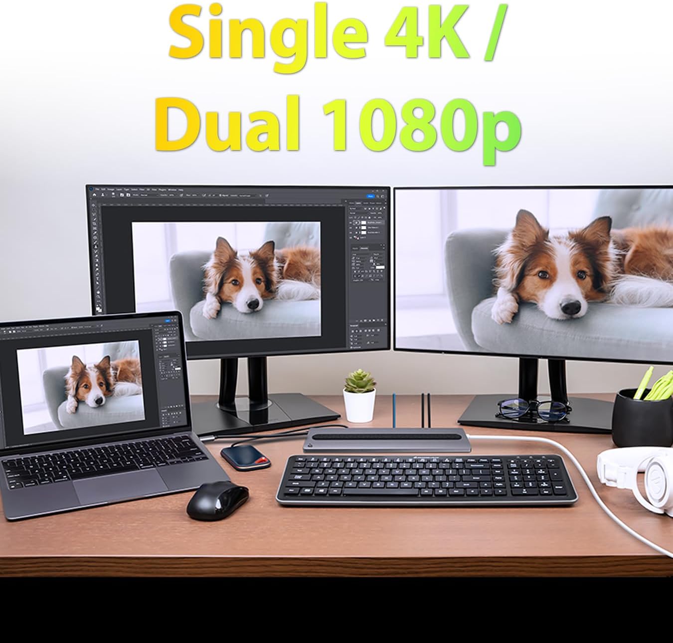 - Maximize Your Workstation — Enjoy stunning 4K visuals while charging your laptop and connect up to 7 other devices. Expand your workspace with HDMI and DisplayPort options for flexible connectivity.