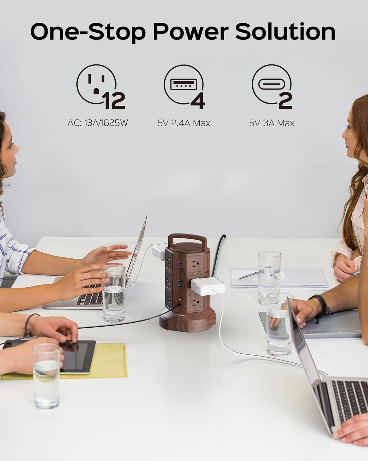 - SPACE SAVING: With the vertical tower design, JACKYLED charging station helps you to save space, with the 12 wide-spaced AC outlets, you don’t need to worry about big plugs blocking the other outlets.
