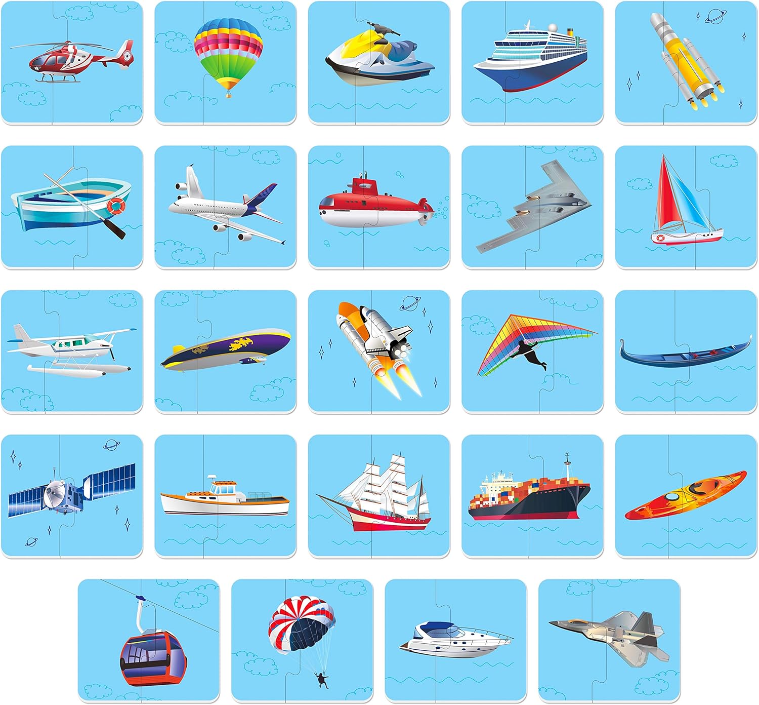 - 48 Vehicle: in 24 blocks, double-sided with adorable and vivid images for easy identification.Furthermore, puzzle pieces belong to different vehicle will not be matched so the kids would find the mistake and fix it.