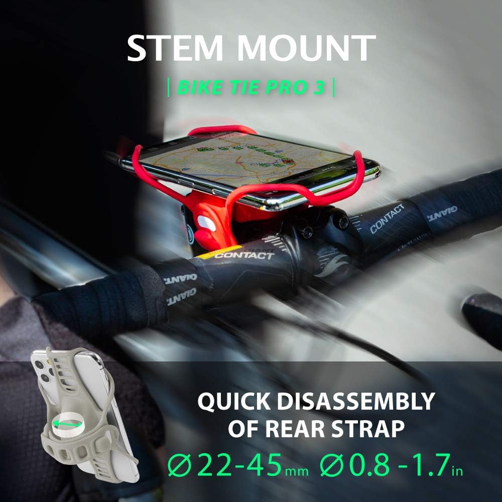 BONE Bike Tie Pro 3, Bike Cell Phone Mount for Stem, Scratch-Free Silicone Holder with Shock-Absorbing Design, Universal Cycling Phone Holder Compatible with Most Smartphones (Gray - Stem)