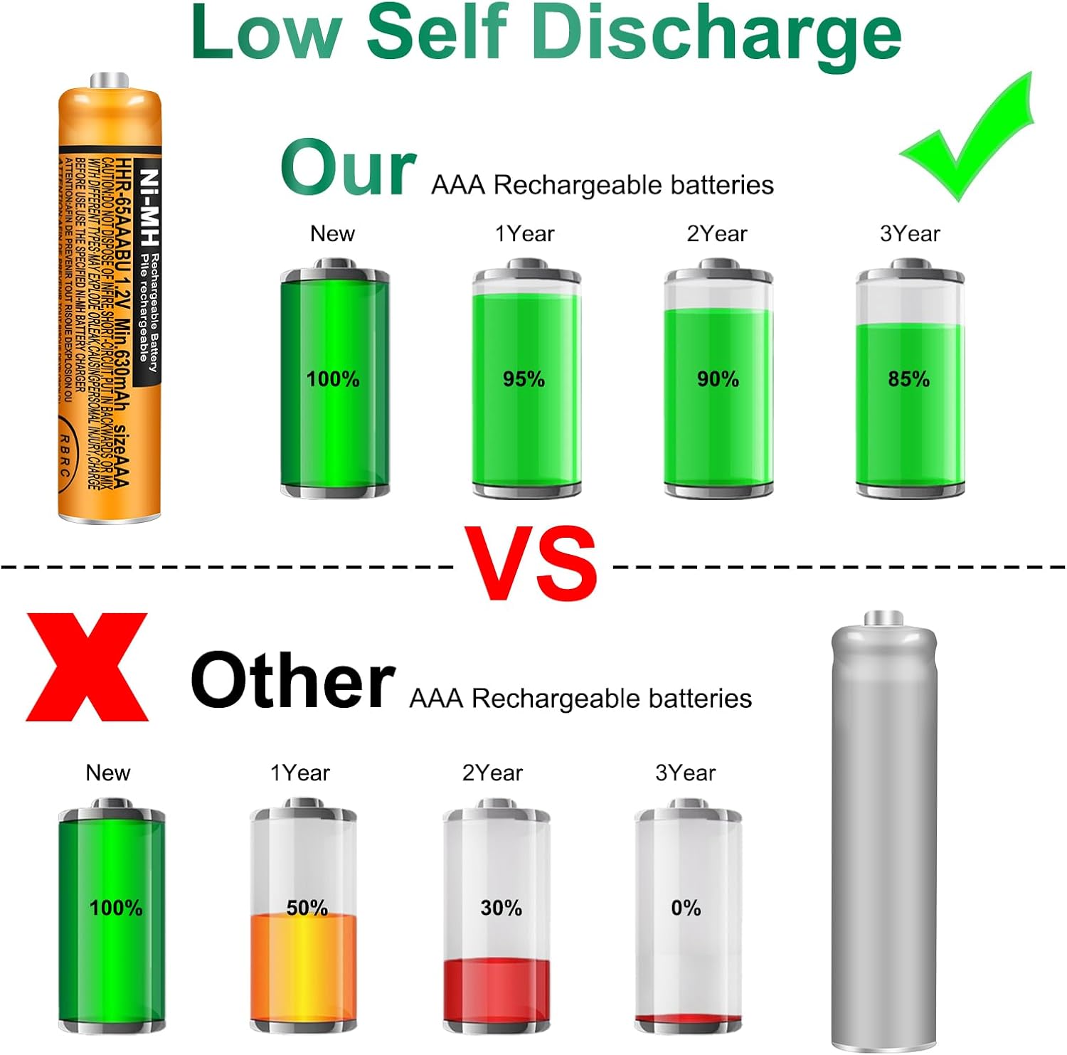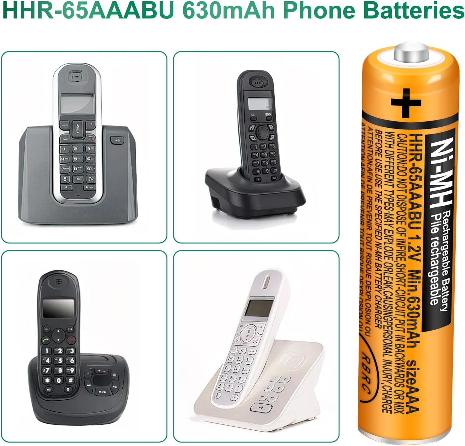 8 Pack HHR-65AAABU NI-MH Rechargeable Batteries 1.2V 630mAh AAA Battery for Panasonic Cordless Telephone Batteries