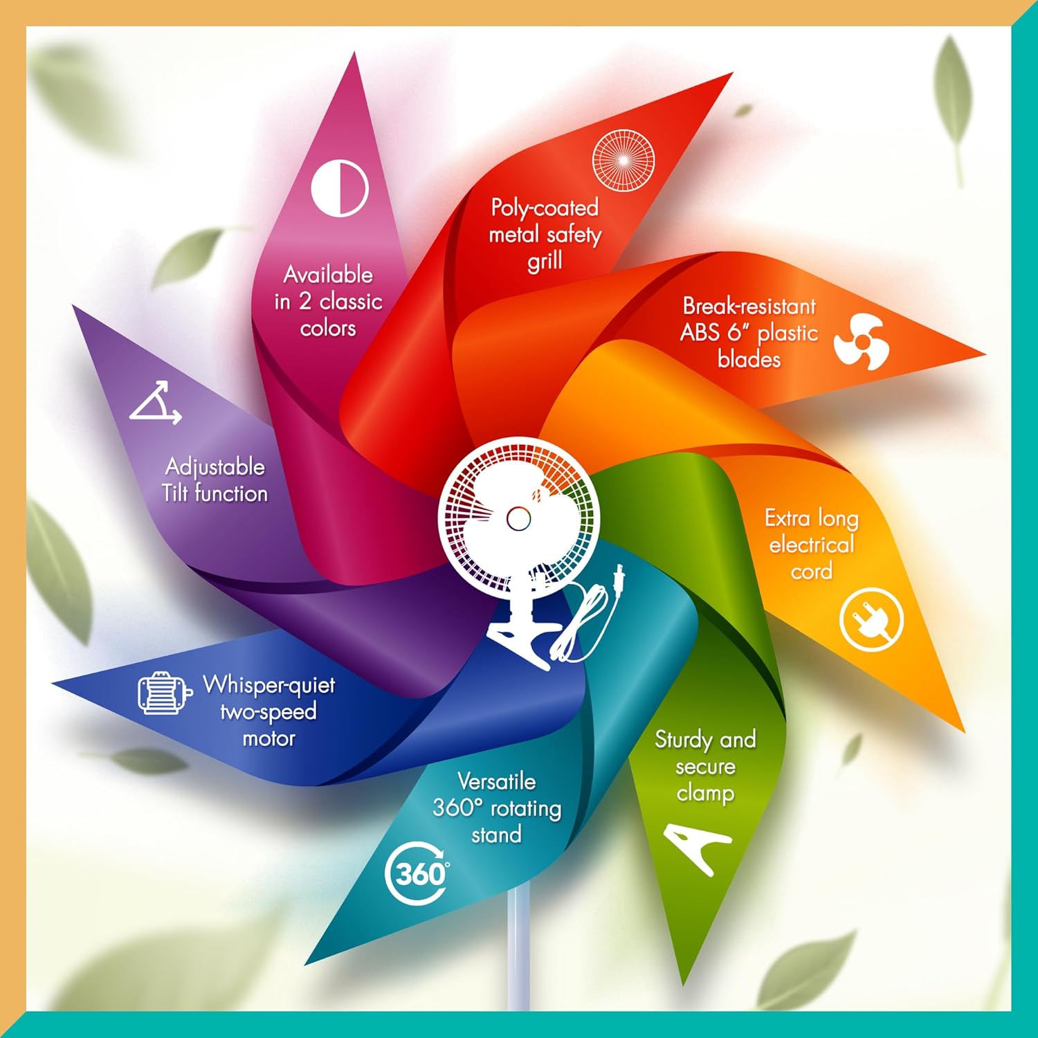 - PRODUCT SPECIFICATIONS: Package contains (1) Joey'z 6-Inch 2-Speed Clip-On Fans in White with a 5 FT Cord