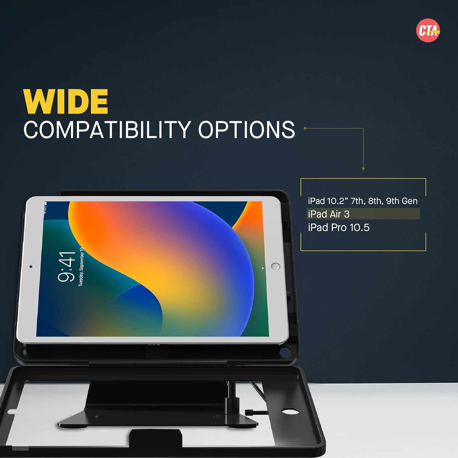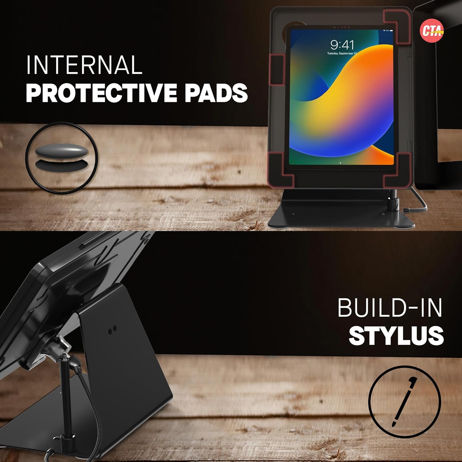 Desktop Anti-Theft Stand – CTA Kiosk Stand with Stylus, Tether, and Aluminum Enclosure for iPad 7th/ 8th/ 9th Gen 10.2,” iPad Air 3, & iPad Pro 10.7” and More (PAD-DASB) - Black