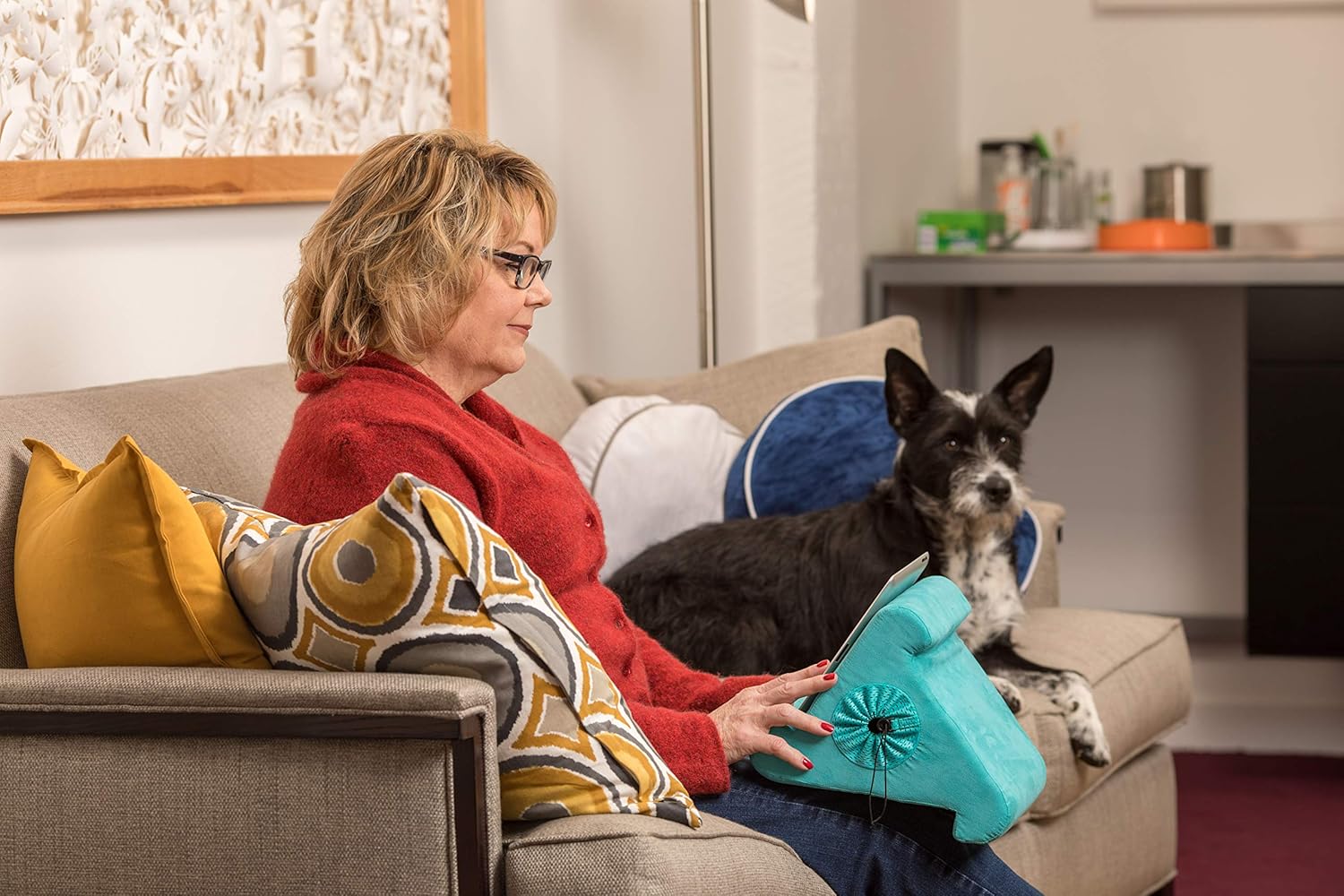 - SOFT, STURDY, LIGHTWEIGHT - Flippy Cubby Tablet Holder is made of lightweight foam with an ultra-suede cover for a sturdy and flexible design that weighs only ounces. The plush polyester exterior is extra soft and can be wiped off with a damp cloth.
