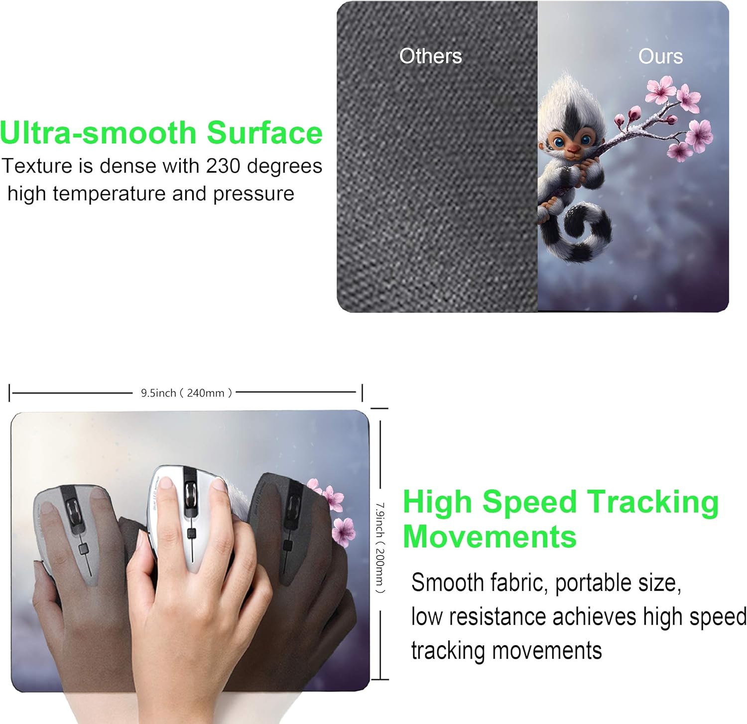 - 【Ultra-smooth Surface】 Texture is denser with 230°F and high pressure treatment. Mouse can be quickly moved and accurately positioned on the slick surface. Great for your laptop,computers & PC.