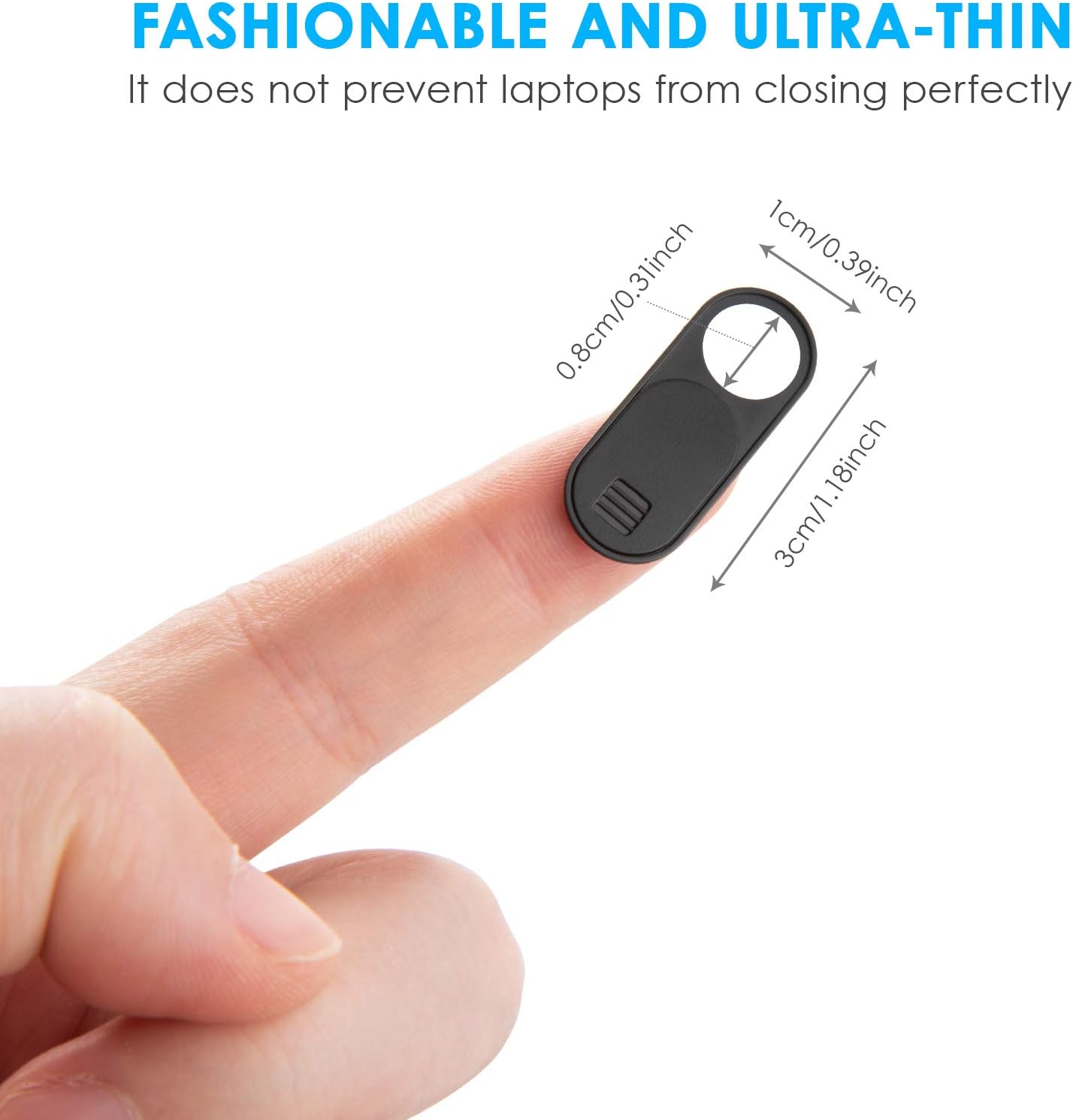 - 【Extremely Thin And Durable】Made of flexibilty ABS Plastic, durable and won't easily break. And measuring the webcam cover only 0.028 inches in thickness, you won't even notice it adheres and it will not interfere with the closing or opening the lid of your laptop. And this laptop camera cover has a curve design, so there will be no sharp places to scratch the computer or phone.
