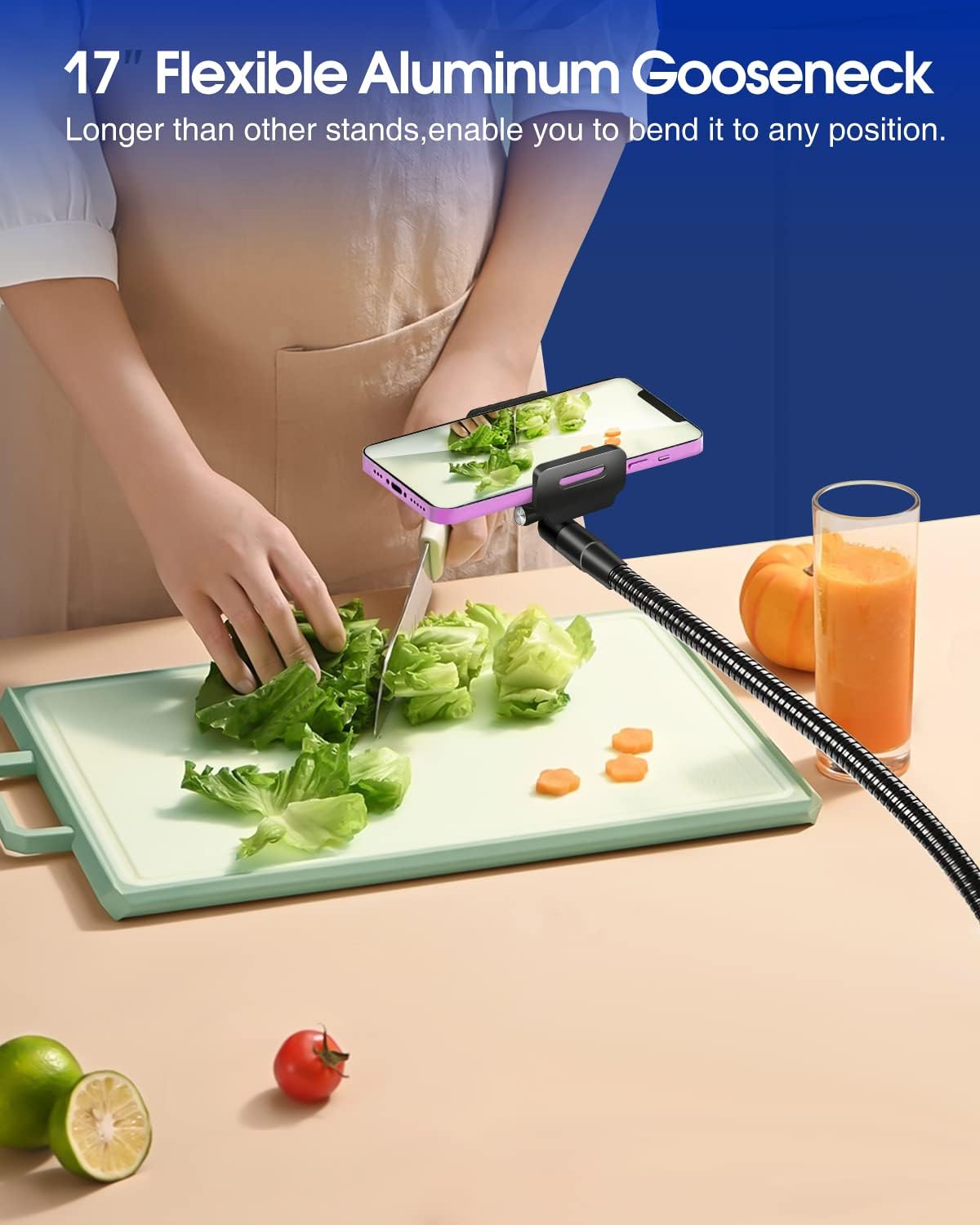 - Give You Total Freedom Anywhere -- Phone tripod is extendable from 21 inches to 80 inches with the quick flip lock; 17" flexible gooseneck arm offers long reach and give you total freedom anywhere even for ultra-low angle or overhead shooting. It's also a nice stand for watching YouTube or having long FaceTime calls instead of using your arm to hold phone.