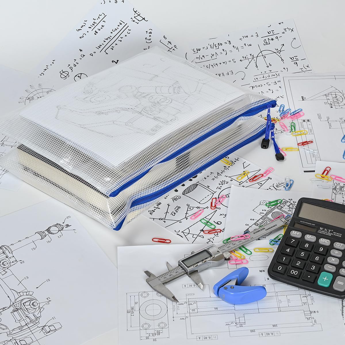 AUSTARK 20 Pcs Zipper File Bags, Plastic Mesh Pouch, Board Game Storage Bag, Waterproof Bags for Office School (B4 Size 15''x11'', White and Blue)