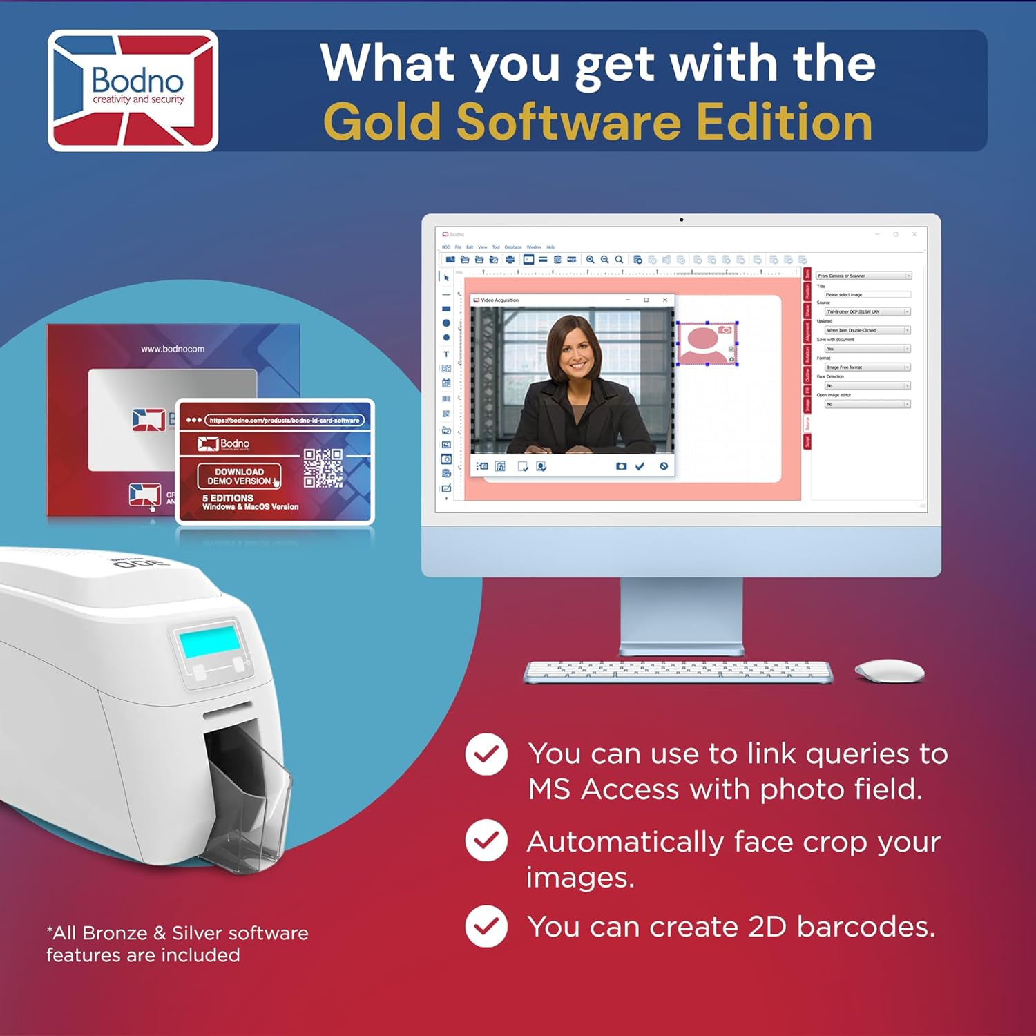 Bodno Magicard 300 Dual Sided ID Card Printer & Complete Supplies Package ID Software - Gold Edition