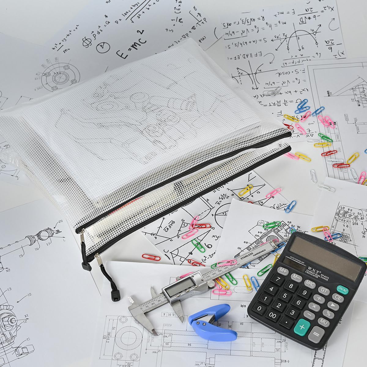 AUSTARK 10 Pcs Zipper File Bags, Waterproof Plastic Mesh Pouch for Office School, Board Game Storage Bags (B4 Size 15''x11'', White and Black)