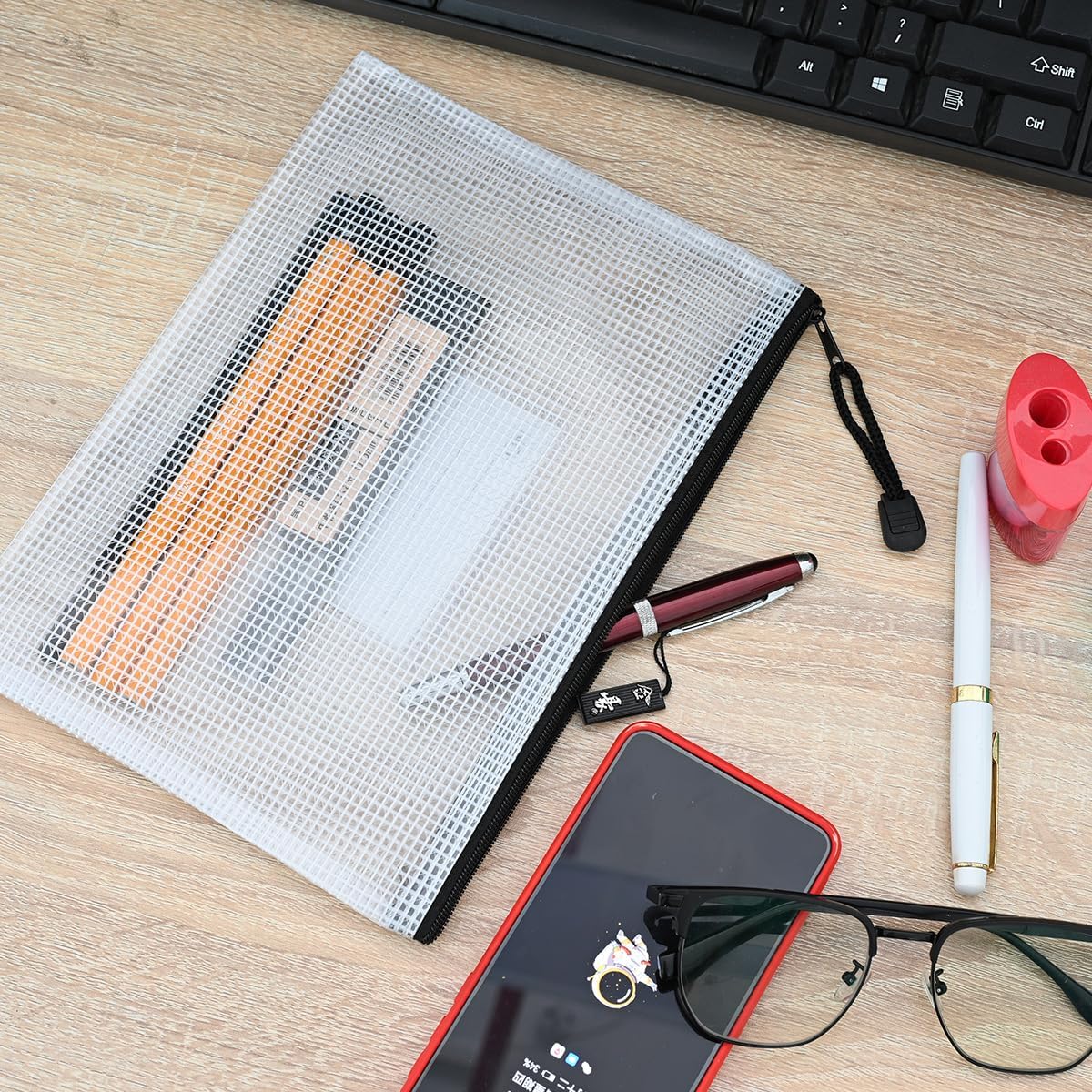 - 10 PCS Plastic mesh zipper bags, 9.2 x 6.7 inch A5 size. Widely used in office supplies, school, home daily life, hospital and travel. These pouches could meet your needs in all ways