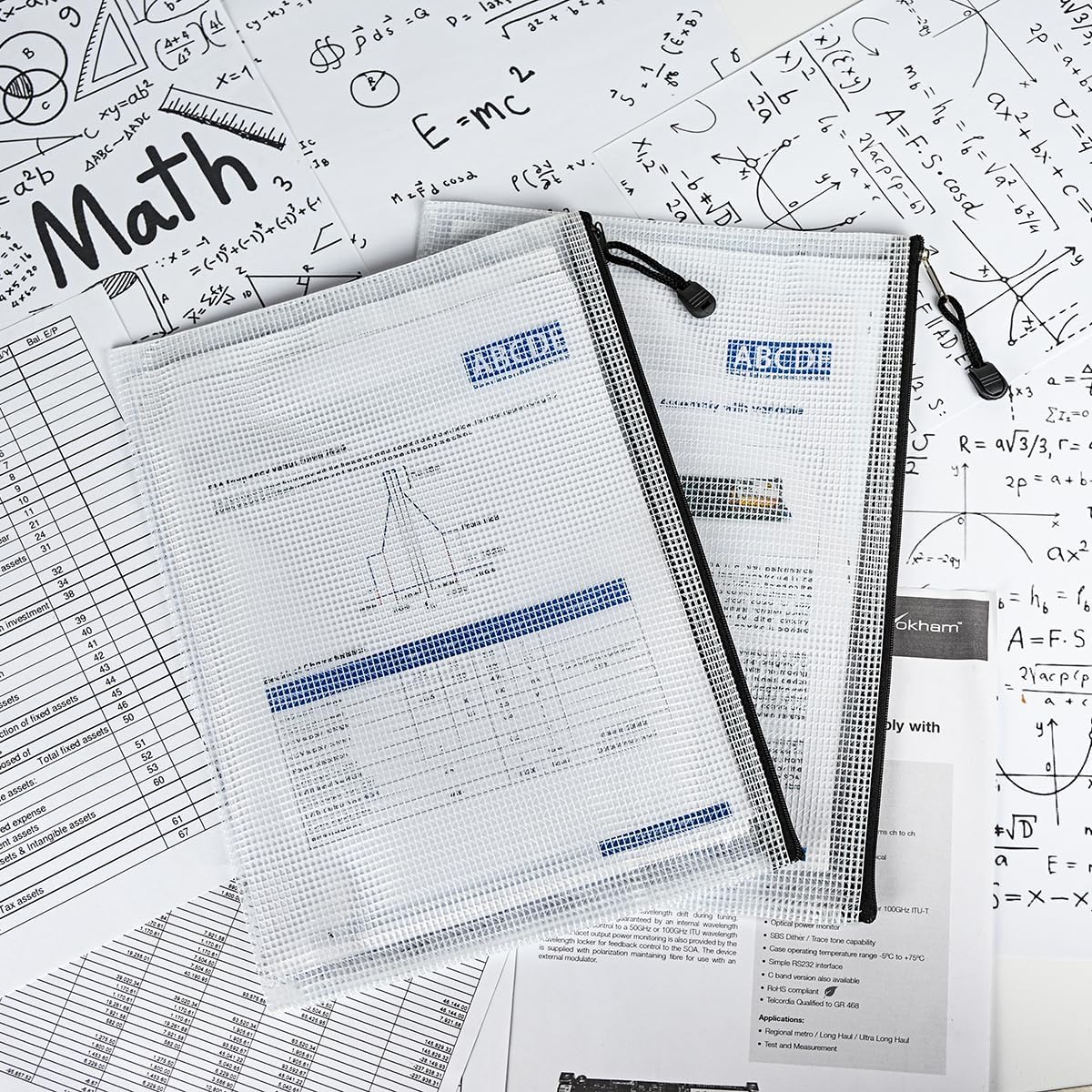 AUSTARK 10 Pcs Zipper File Bags, Waterproof Plastic Mesh Pouch for Office School, Board Game Storage Bags (A4 Size 13.4''x9.4'', White and Black)