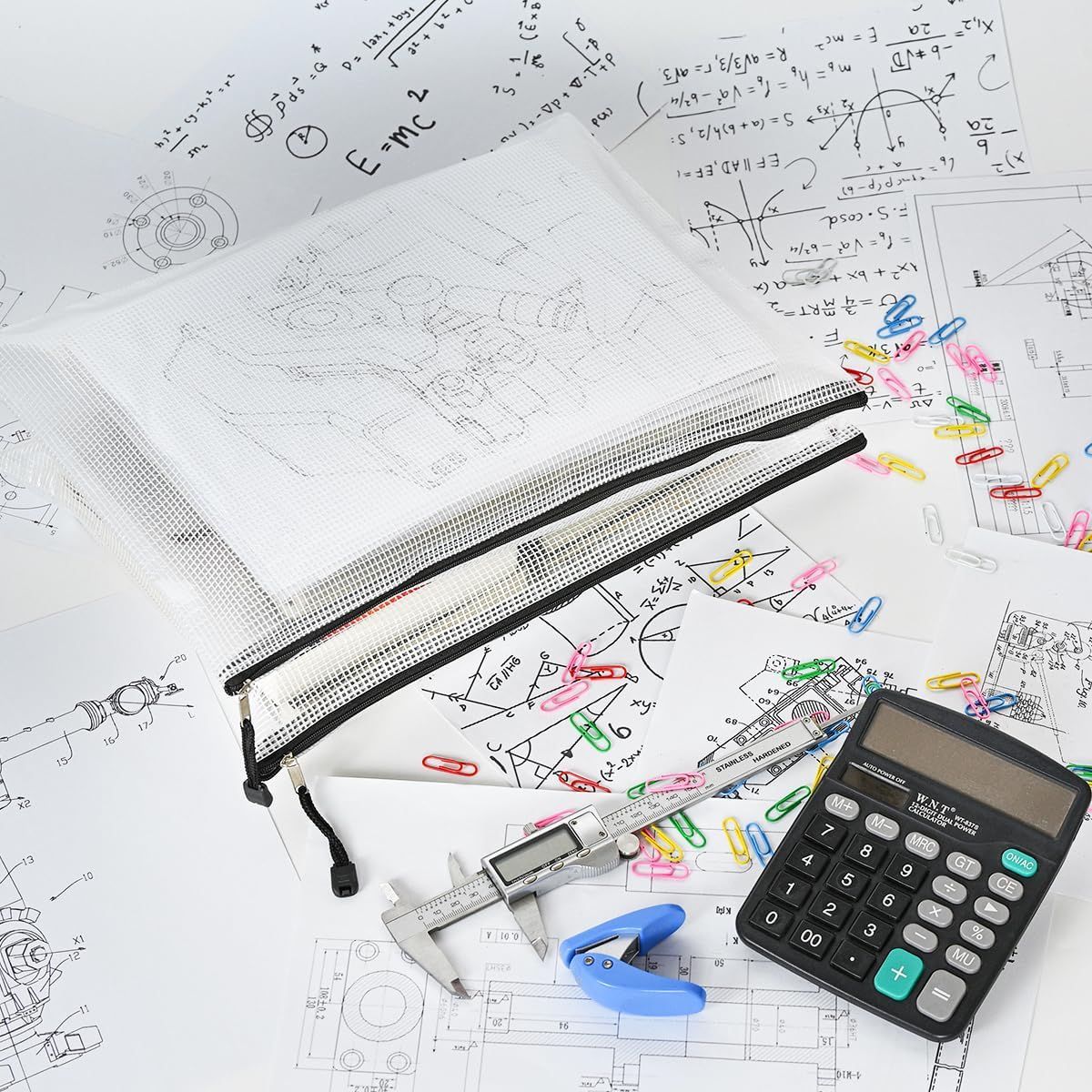 AUSTARK 20 Pcs Zipper File Bags, Plastic Mesh Pouch, Board Game Storage, Waterproof Bags for Office School (B4 Size 15''x11'', White and Black)