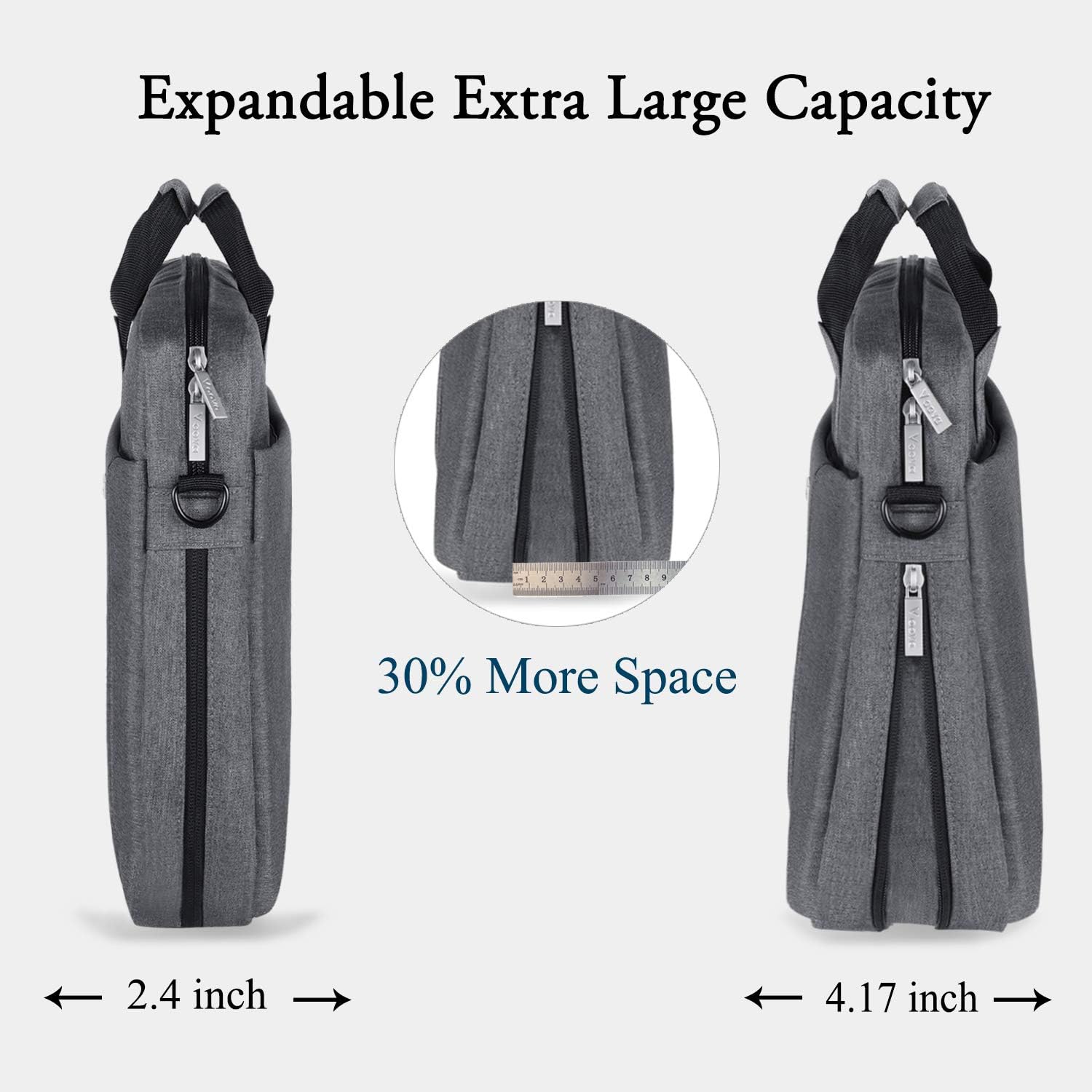 - Expandable Capacity(2.4-4.17 inch): One unique features of this 17 inch laptop bag is invisible expansion zipper at the bottom, which can be extended additional 1.77 inch and increase the overall inner space of the briefcase. Extra capacity allow more bully laptop or more stuffs to be stored during work and business trip when you need.