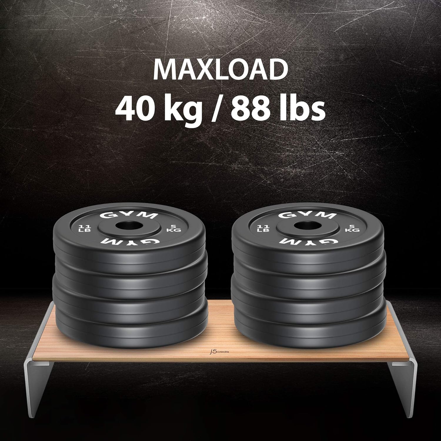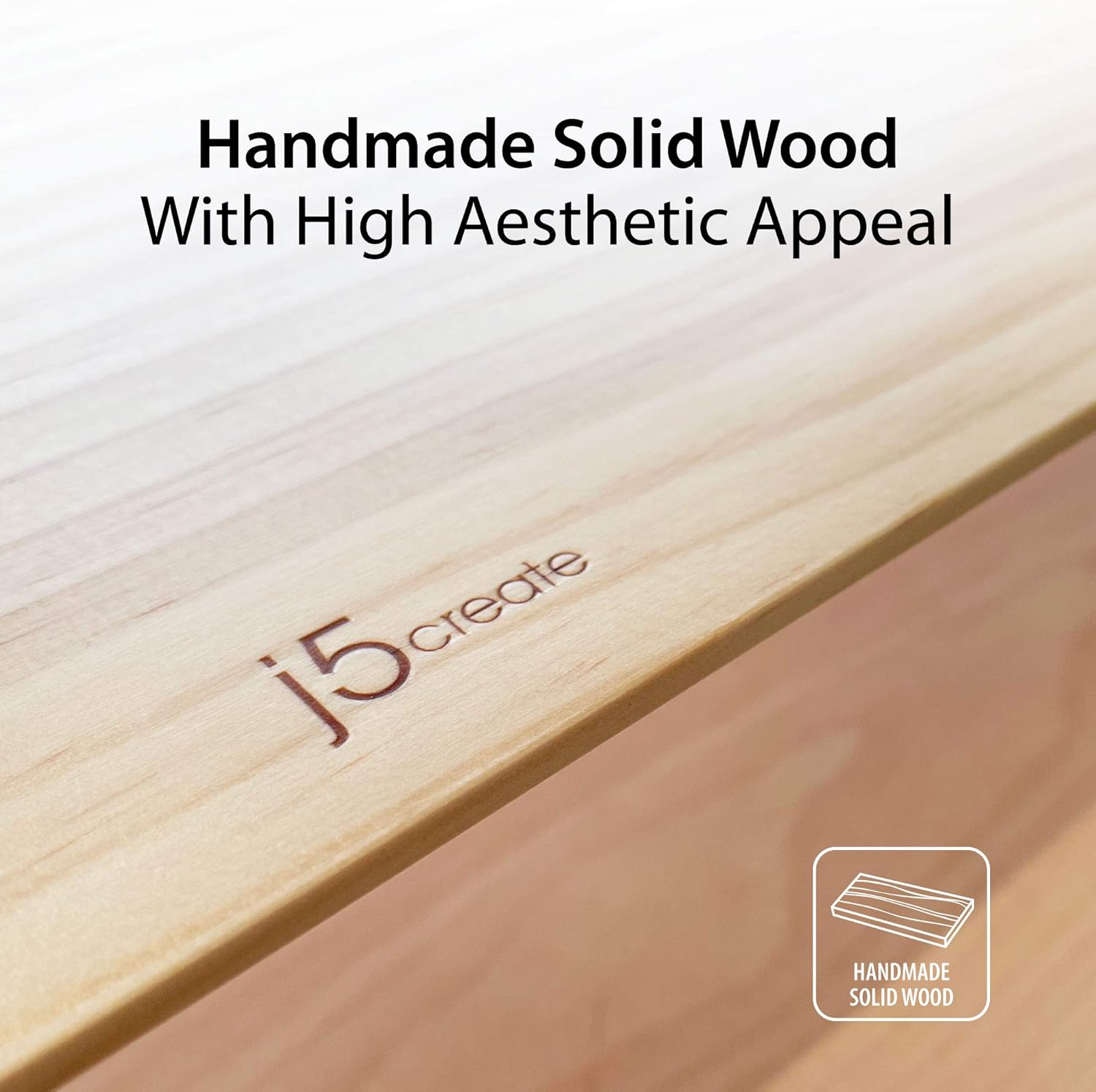 j5create Wooden Monitor Stand with USB Type C/HDMI Docking Station - USB 3.1 C to C Cable Included - Handmade Wood Panel with Aluminum Riser for Computer Screens, Laptops, TV