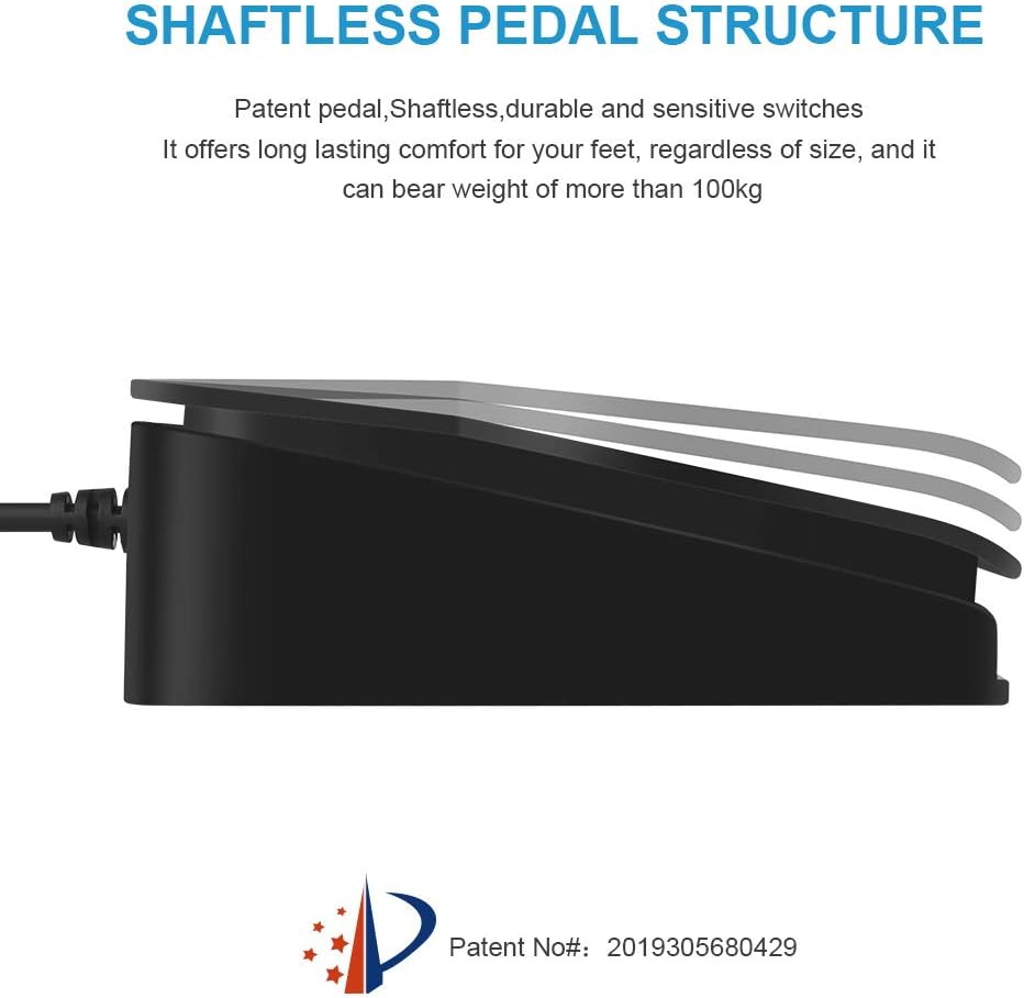 - This foot pedal is build with durable, sensitive switches providing you with an easy touch response and minimal resistance. The ergonomic design with a wide pedal and the large size enables you long lasting comfort for your feet, and it can bear weight of more than 100kg.