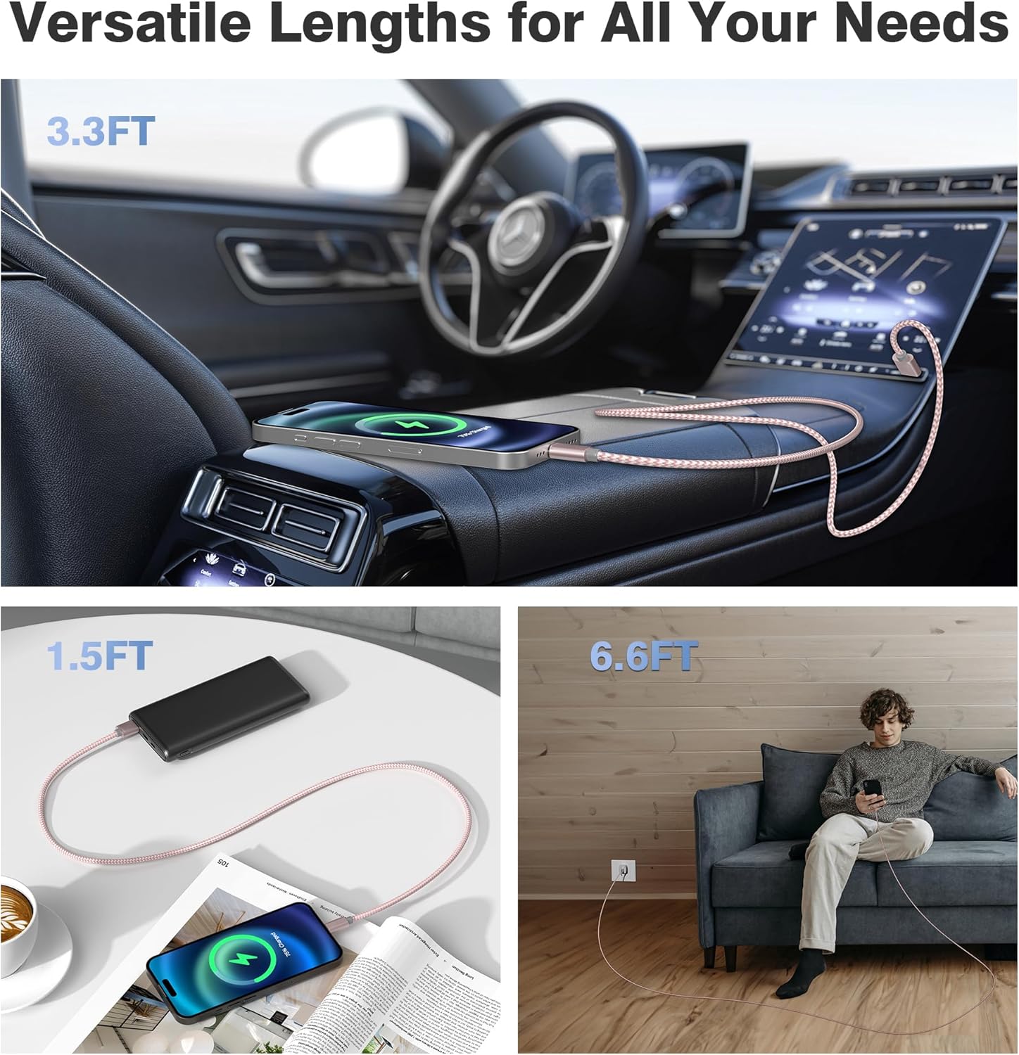 Elebase USB Type C Charging Cable 1.5/3.3/6.6FT 3 Pack,USBC Car Charger Cord for iPhone 16 15 Plus Pro Max 2,Airpods 4,Samsung Galaxy S24 S23 Plus Ultra Note 10 20 S10 S10E,Tab A7,A54 A53 A52,Z Flip