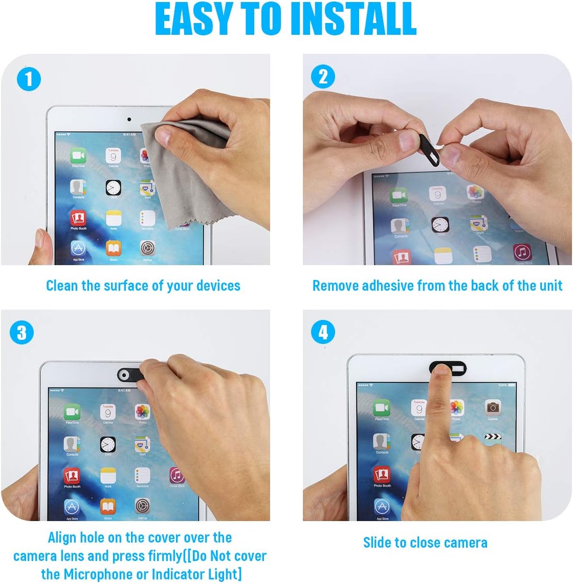 - 【Easy To Install And Use】Just need to simply remove the back sticker and align the camera cover slide to your webcam, attach and press firmly for 15 seconds for a strong. The strong gel provides a durable and reliable connection between your devices and camera cover. Also, the adhesive can be easily applied and removed from the device without leaving any traces.