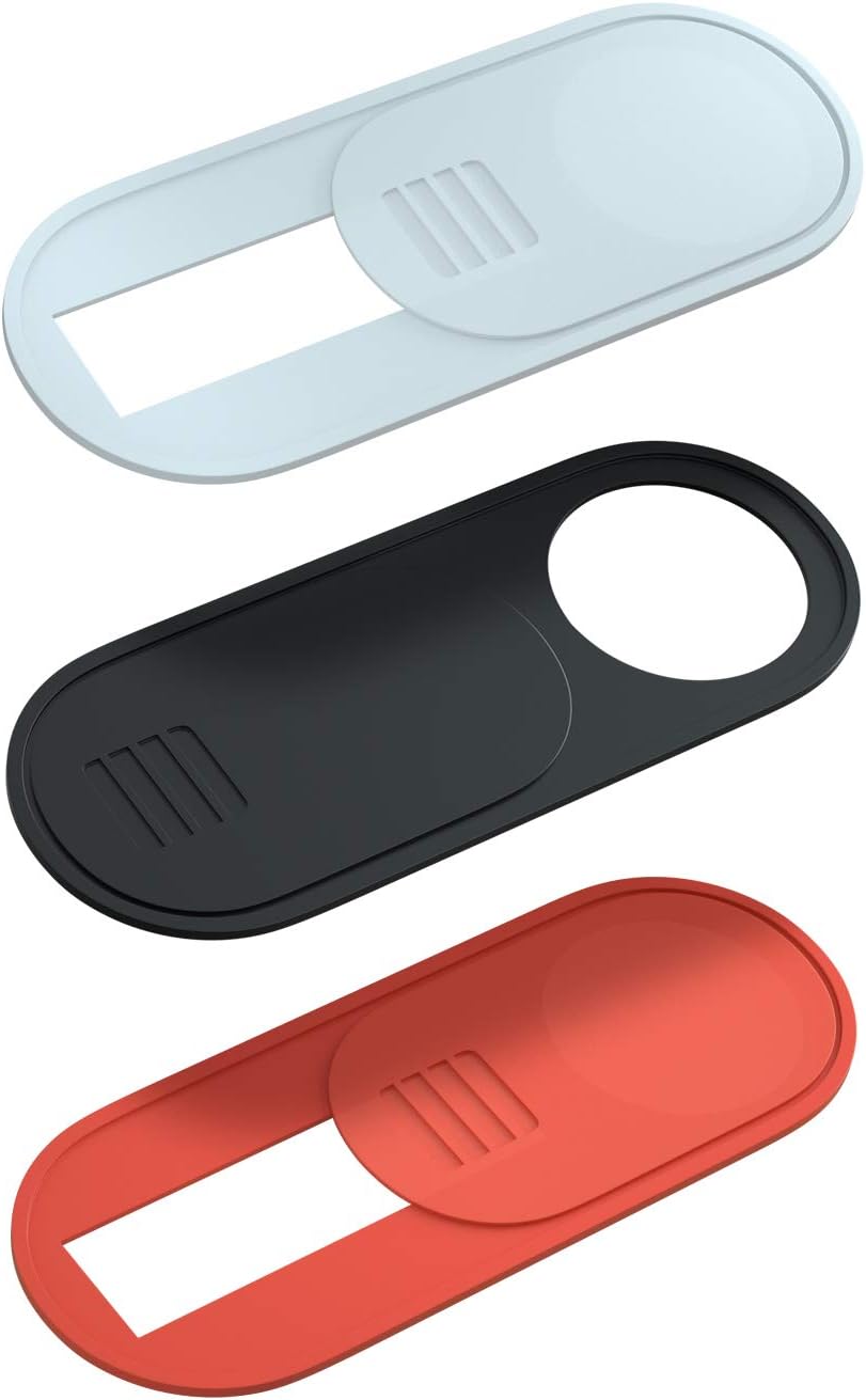 Webcam Cover Slide, 0.028-Inch Ultra-Thin Camera Blocker for MacBook, iMac, Laptop PC, Desktop, iPad, iPhone, Smartphone, Web Cam Privacy Cover Protect Visual Privacy&Security (Black/White/Red-3 Pack)