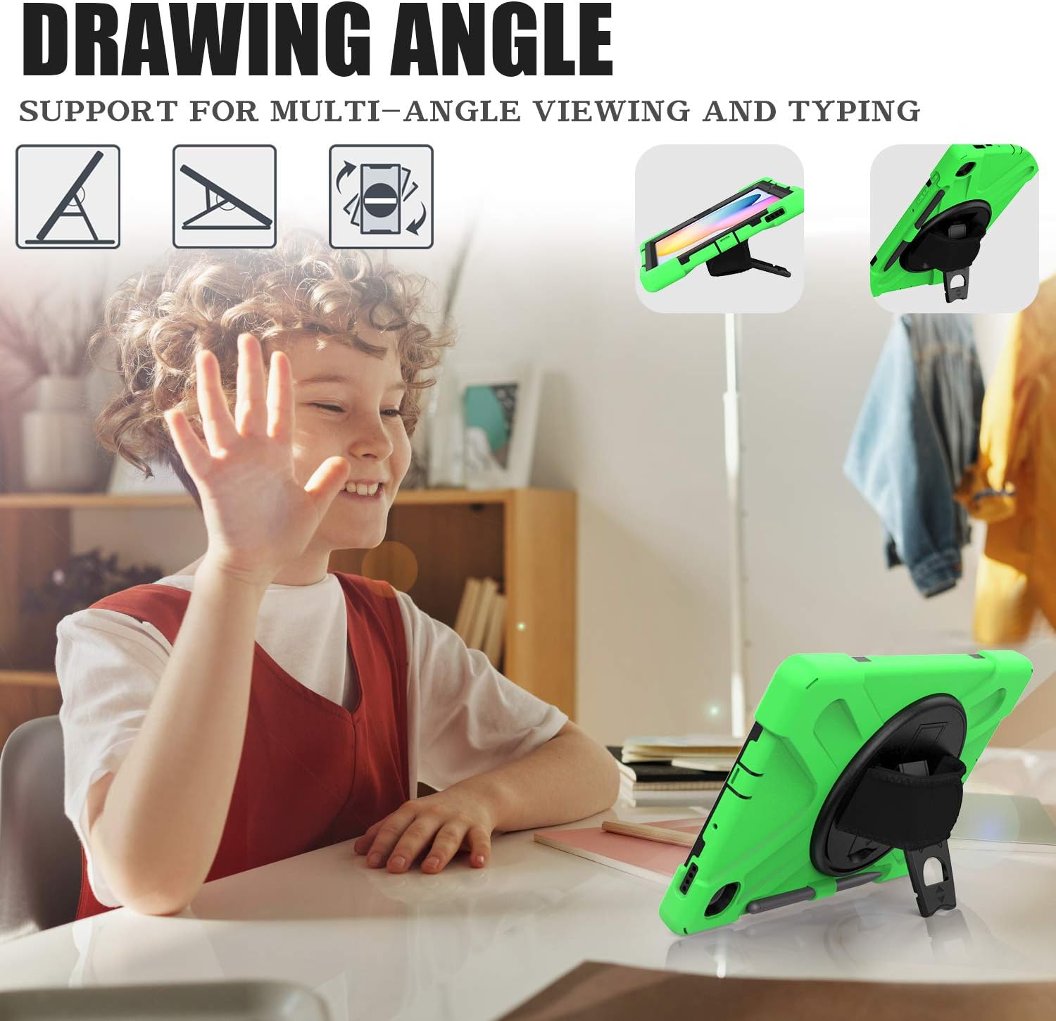 BRAECN for Samsung Galaxy Tab S6 Lite 10.4 Case, Heavy Duty Shockproof Case with Hand Strap, Shoulder Strap, Kickstand, S Pen Holder for Galaxy Tab S6 Lite 10.4 Inch SM-P620/P610 2024/2022/2020-Green