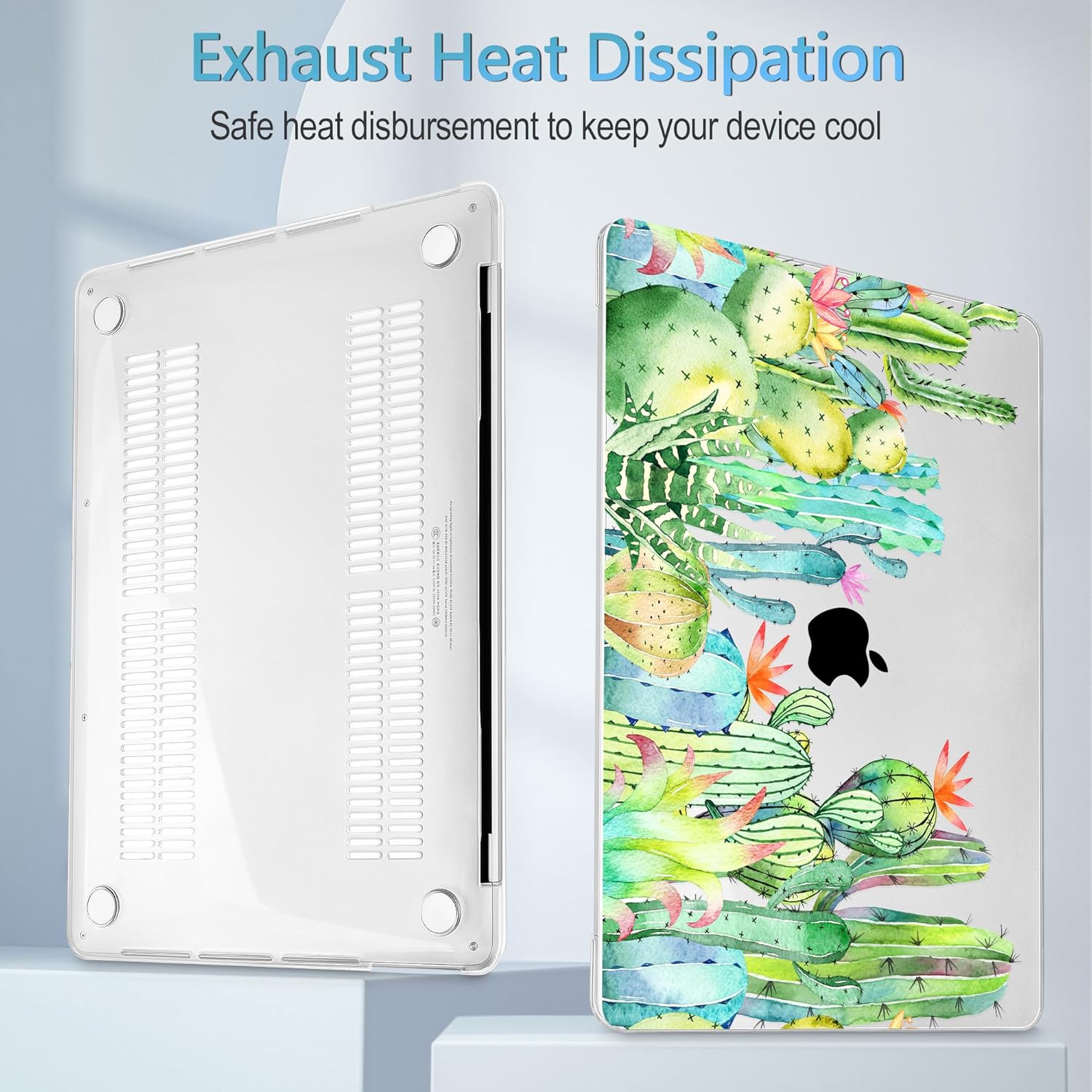 Mektron for MacBook Pro 13 inch Case 2022 2020 Release A2338 M2 M1 A2289 A2251, Printing Plastic Hard Shell Cover with Keyboard Skin for New MacBook Pro 13.3-inch Touch Bar,Watercolor Cactus