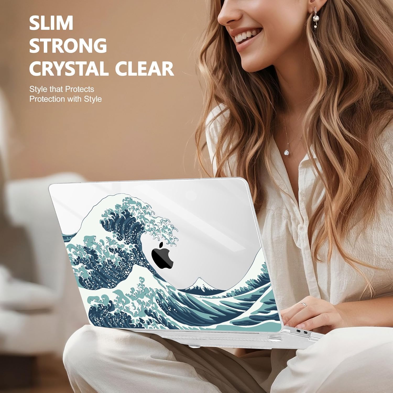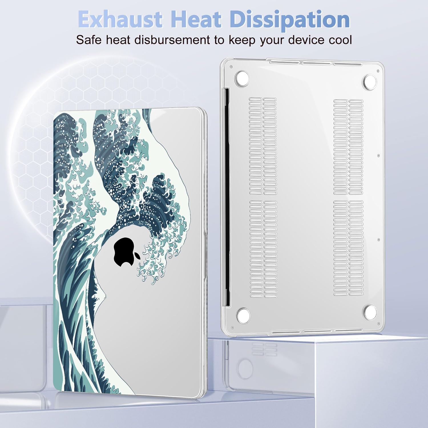 May Chen Compatible with MacBook Pro 13 inch Case 2022 2021 2020 Release Models A2338 M2 M1 A2251 A2289, Plastic Hard Shell Case for MacBook Pro 13 Inch with Touch Bar Fits Touch ID, Great Wave