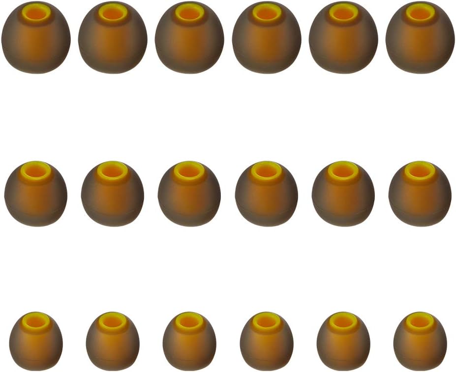 Earbud Tips Soft Silicone Earbuds Replacement Tips Fit for in-Ear Headphones(Inner Hole from 3.8mm - 4.2mm Earphones) 9 Pairs S/M/L,Gray/Yellow